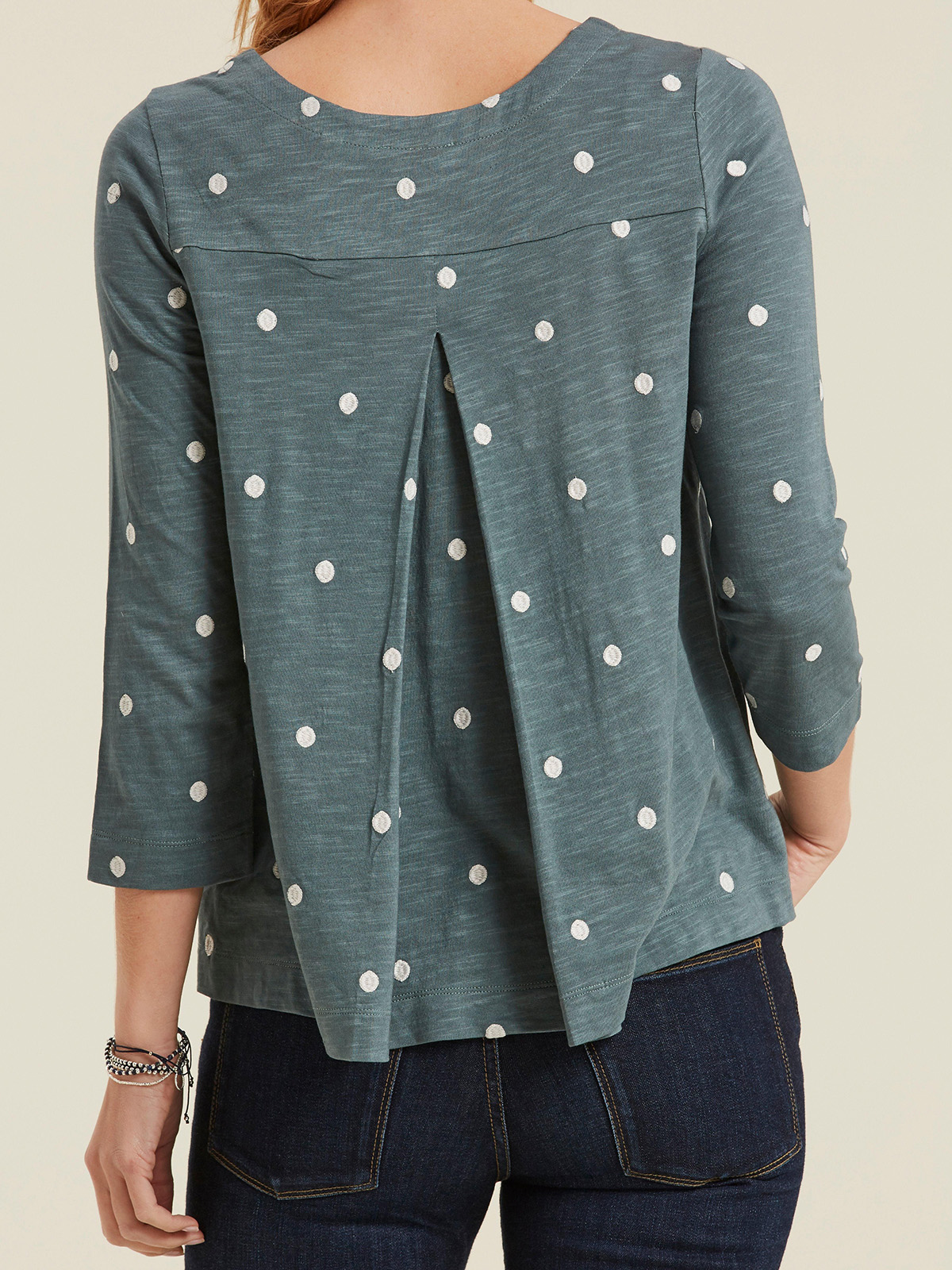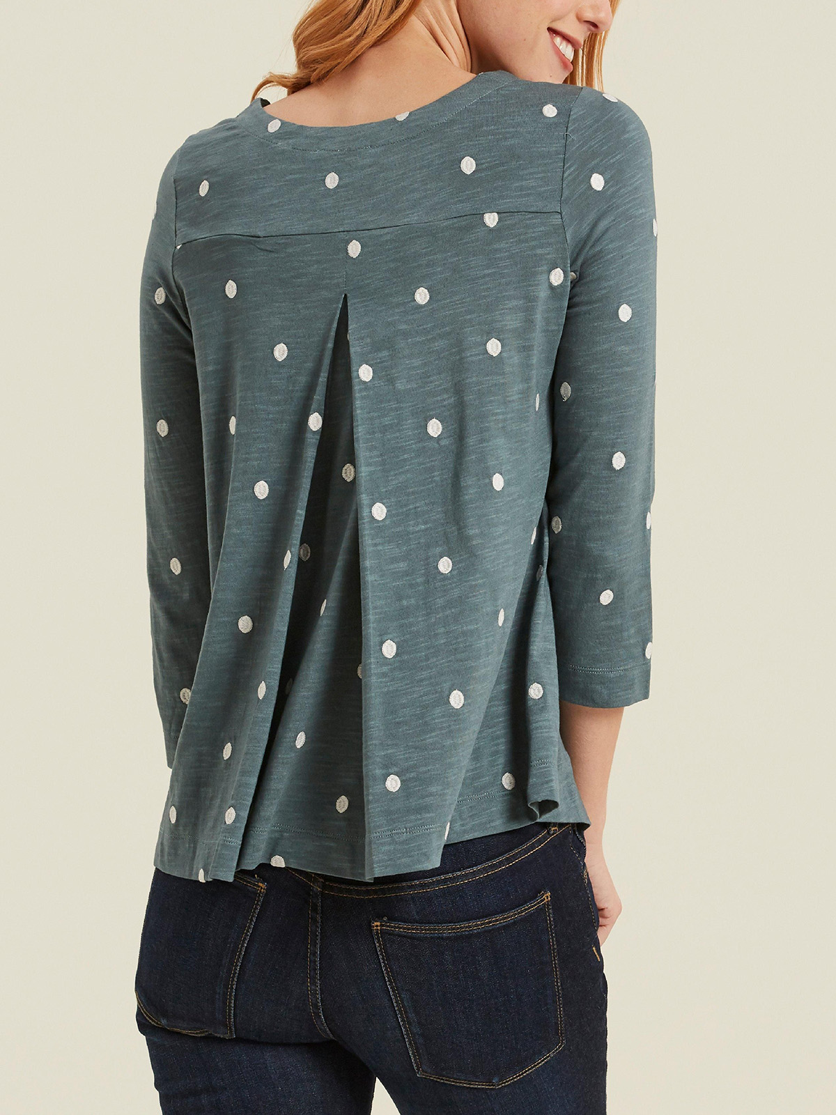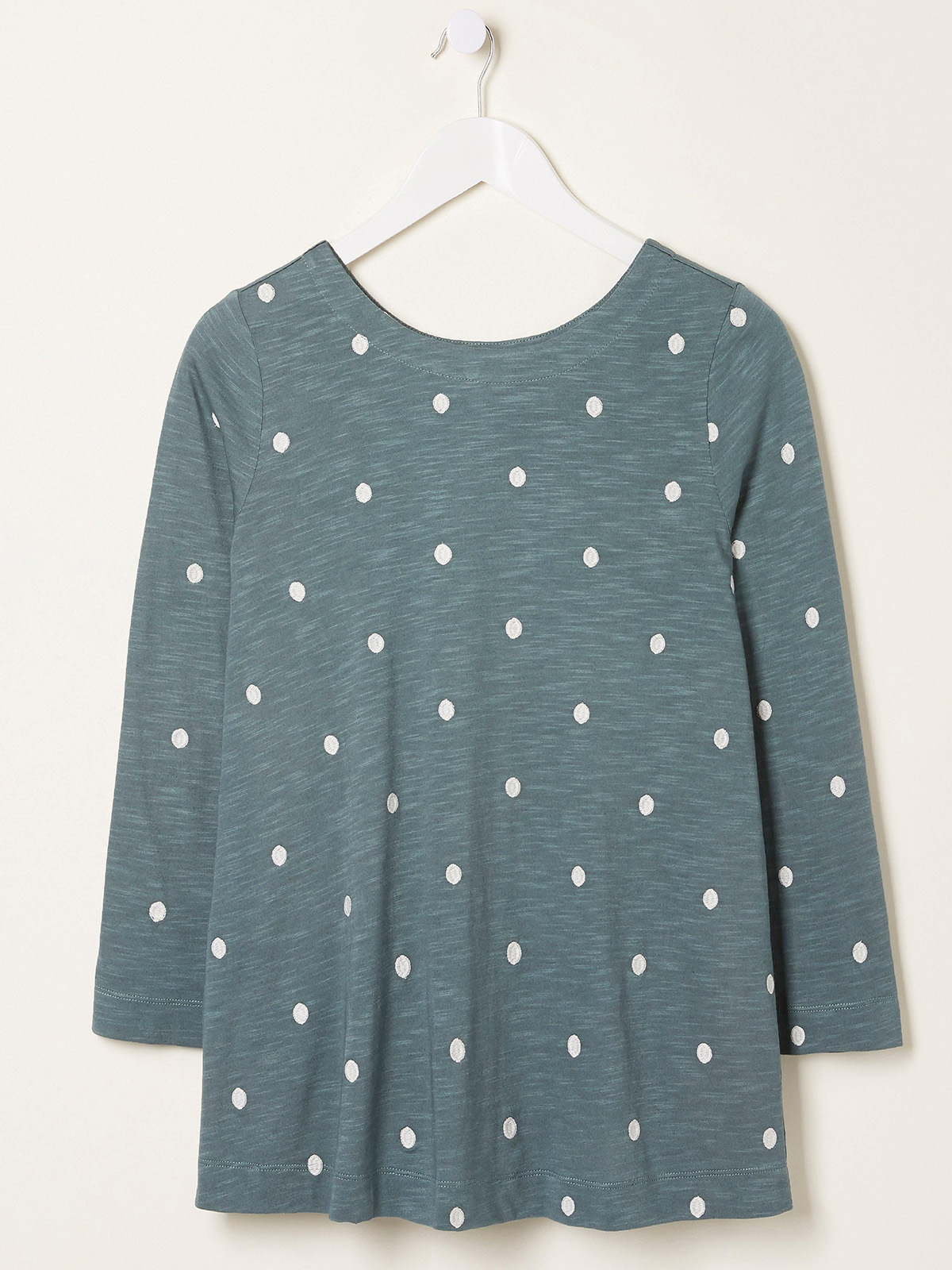 Styled with an easy round neckline, this top is decorated with embroidered spots throughout and is constructed from a super-soft cotton-blend.