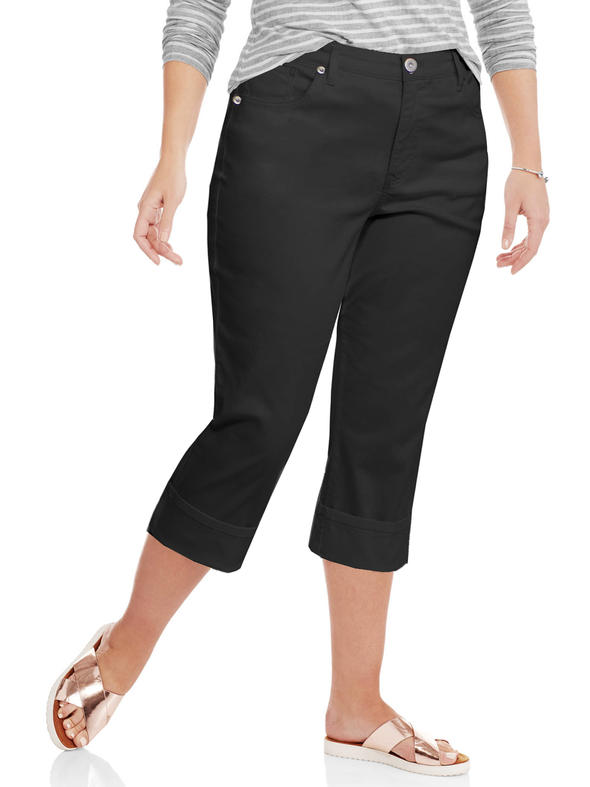 Women's Plus Size Turned-Up Capri Denim Jeans