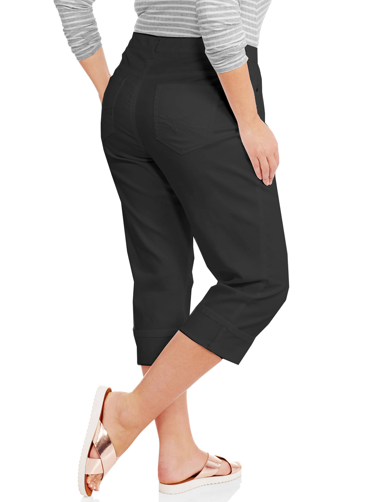 These capri jeans offer a slimming effect tummy control to keep you feeling confident while the elastic sewn into the waistband provides optimum comfort. Made from a soft cotton-spandex blend, these pants have just enough stretch. You can cuff these capris to the length of your choice and feature five handy pockets (three front, two back), Button and zip fastening closure.