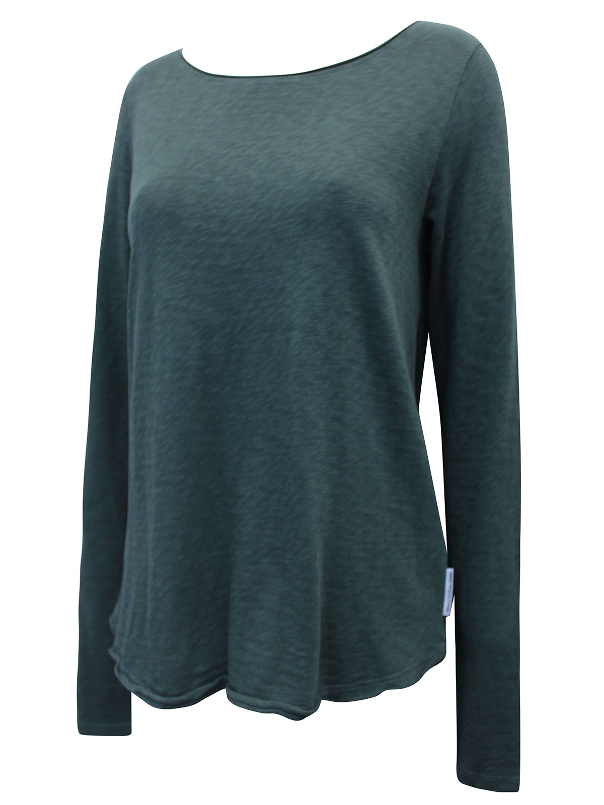 Look to this long sleeve top as the weather gets cooler. Made from 100% cotton, it features a scoop neckline, long sleeves for warmth and raw trims. Length 24in.