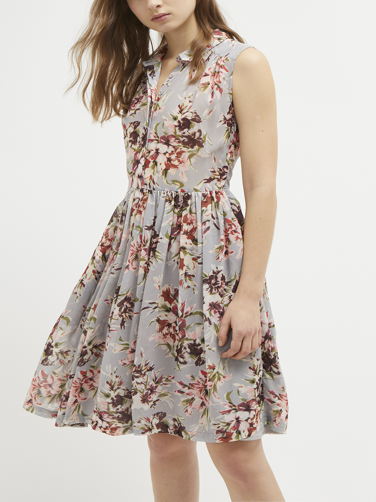 The Alerie Drape Floral Shirt Dress is a pretty piece perfect for your summer wardrobe. With a retro-inspired silhouette, the sleeveless shirt dress has a flattering fit and flare shape and a classic button front. Covered in an eye-catching floral print. UK size 10 length is 100cm/39.4inches.