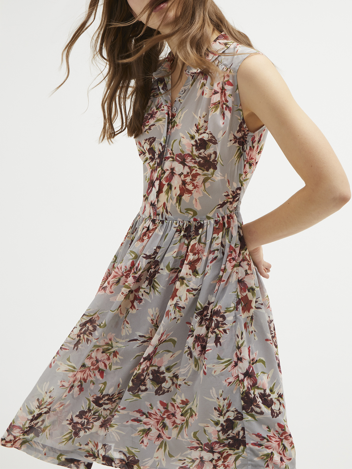 Alerie Drape Floral Shirt Dress - Light Perla Multi