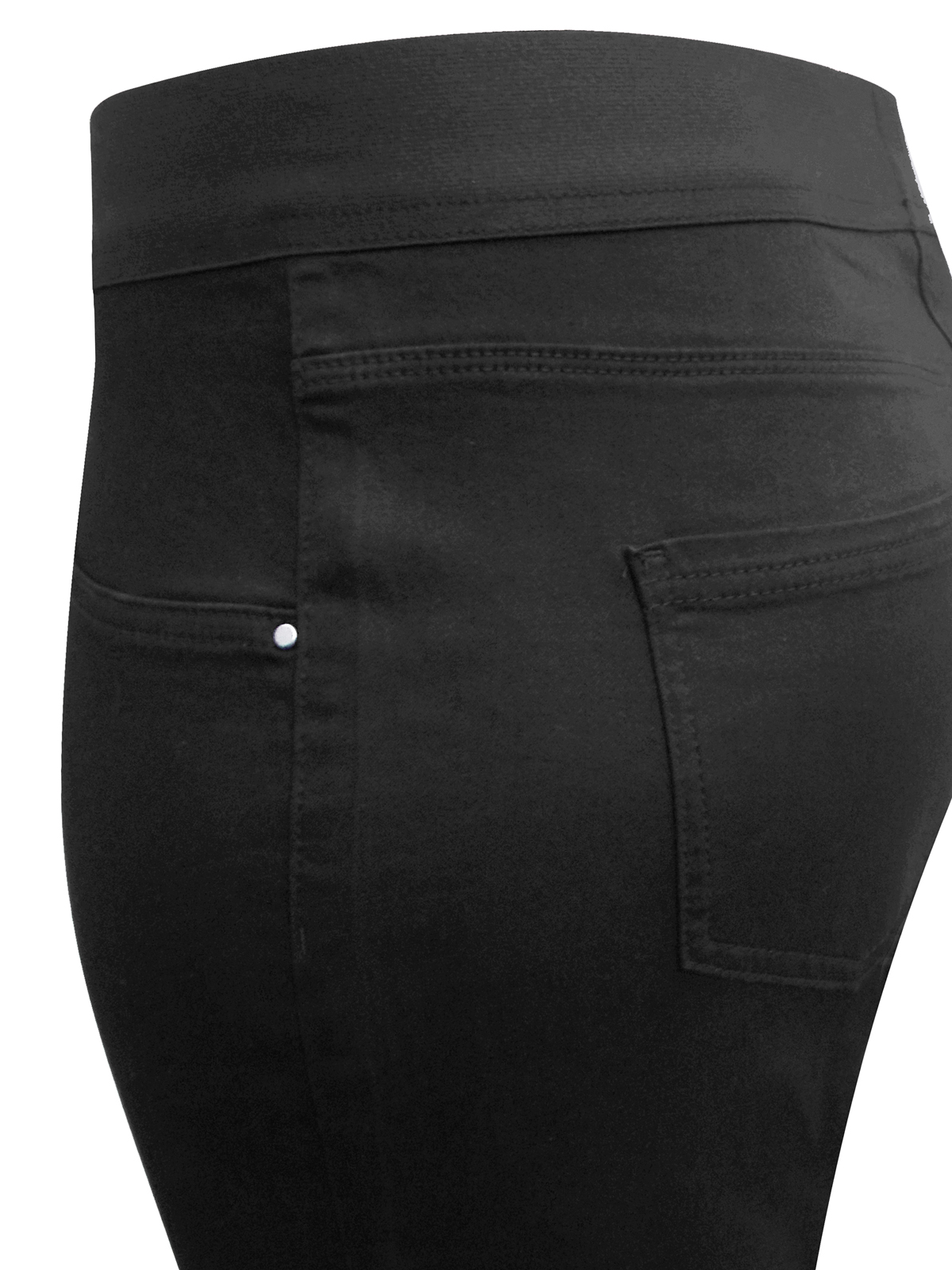 Super soft pair of denim jeggings with optimum comfort and fit, featuring an elasticated waistband. Here in a black wash tint, they have a front pocket and two back pockets. Light and skinny, they have all the slimming effect with no bulk. The softness of the fabric makes them flexible and totally practical.