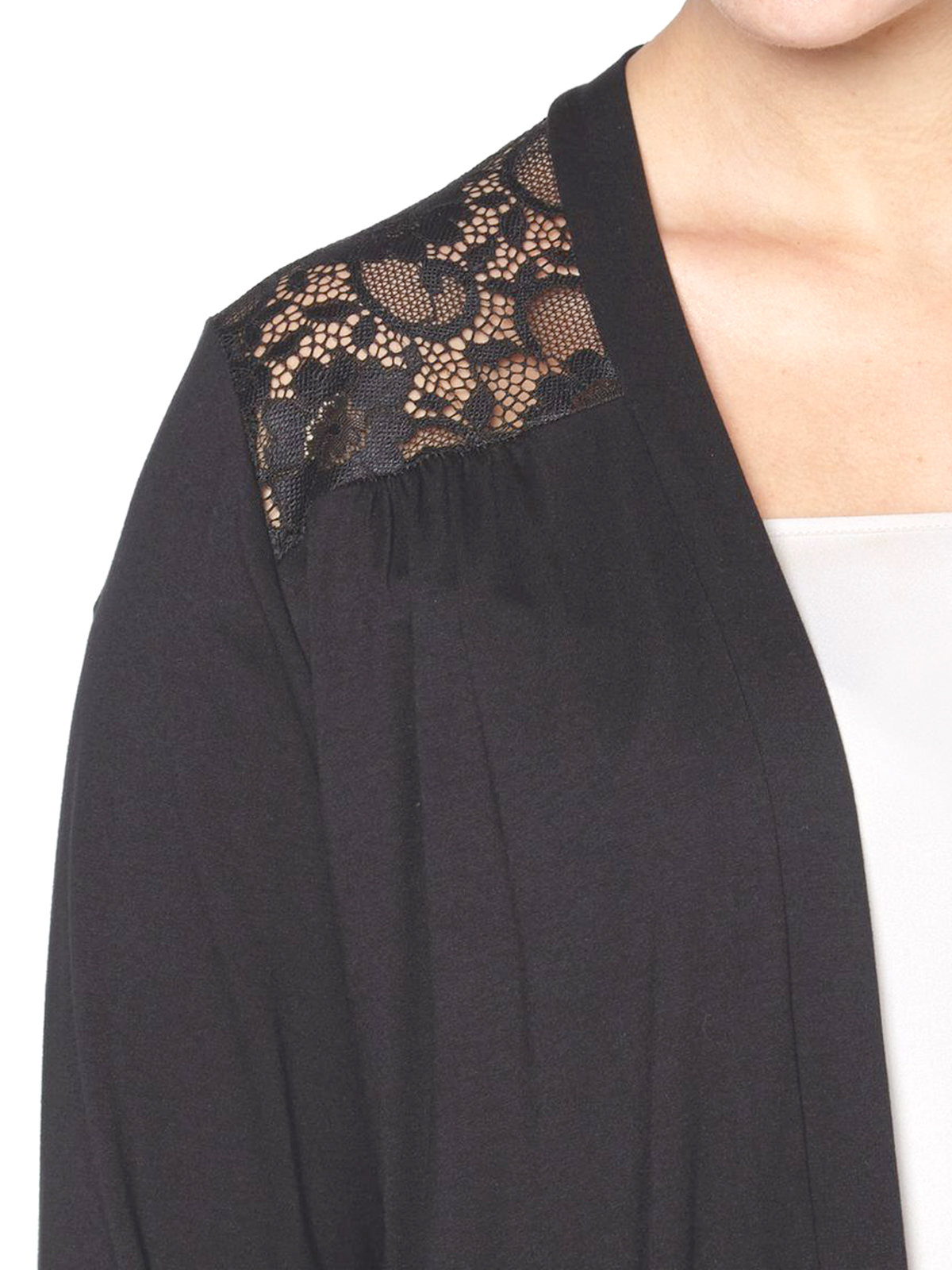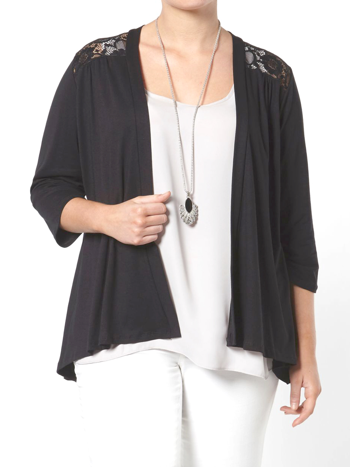 Lace Panel Open Front Cardigan by Grace