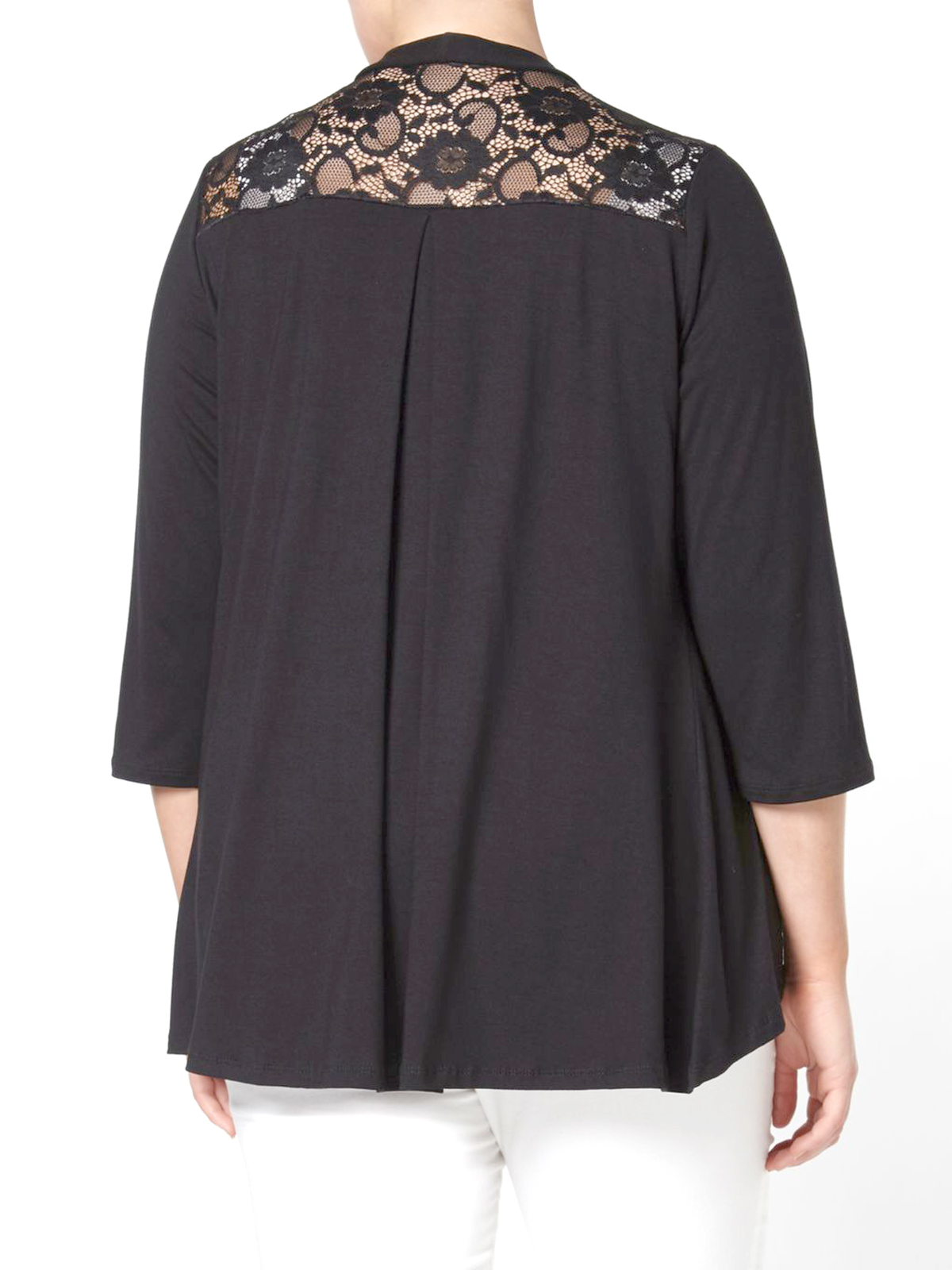 Easy to wear cardigan with pretty lace panel to the back and flattering 3/4 length sleeves. Length 25in