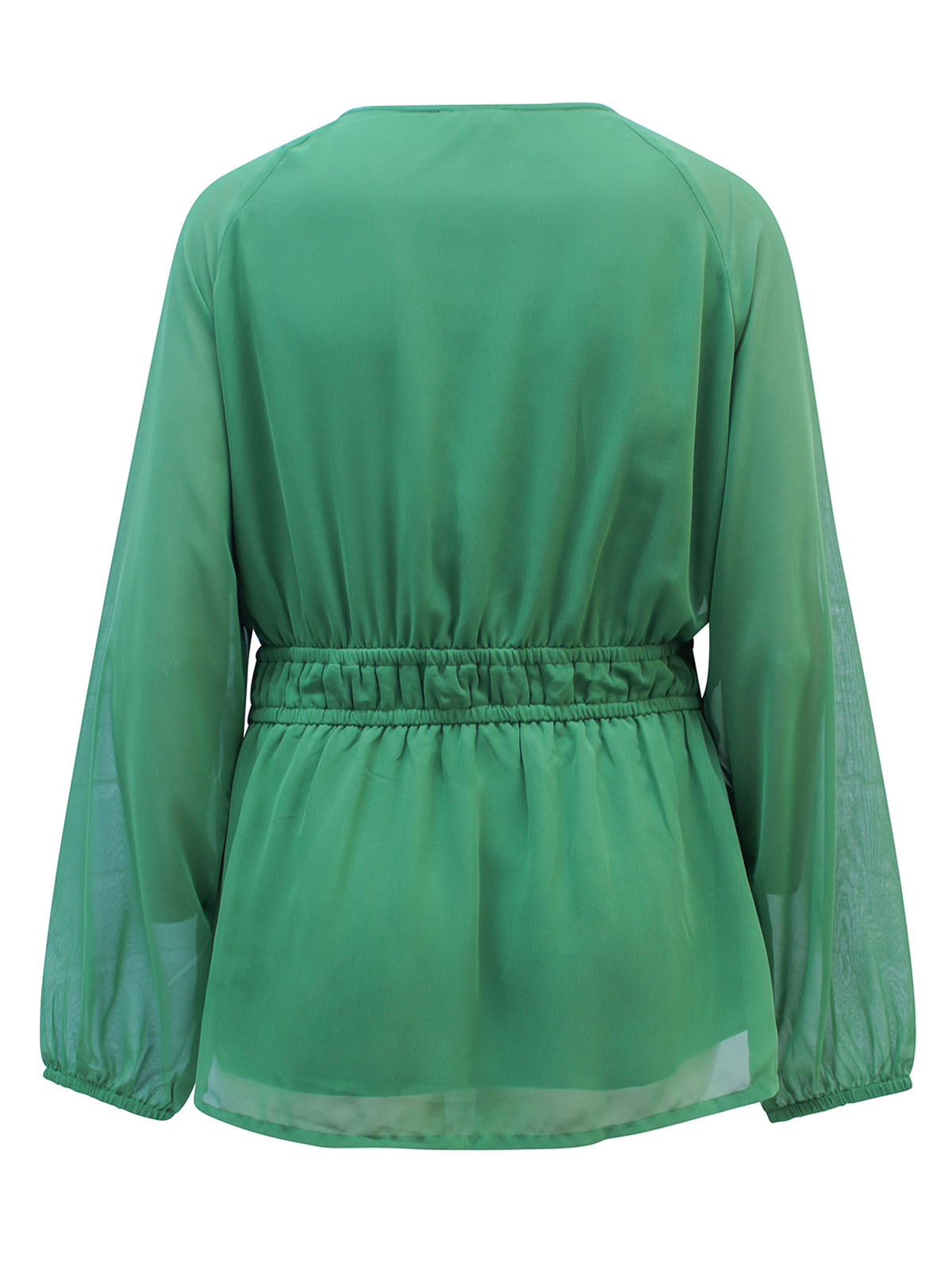 Shirred Waist Detail Long Sleeve V-Neck Blouse (£24.00)