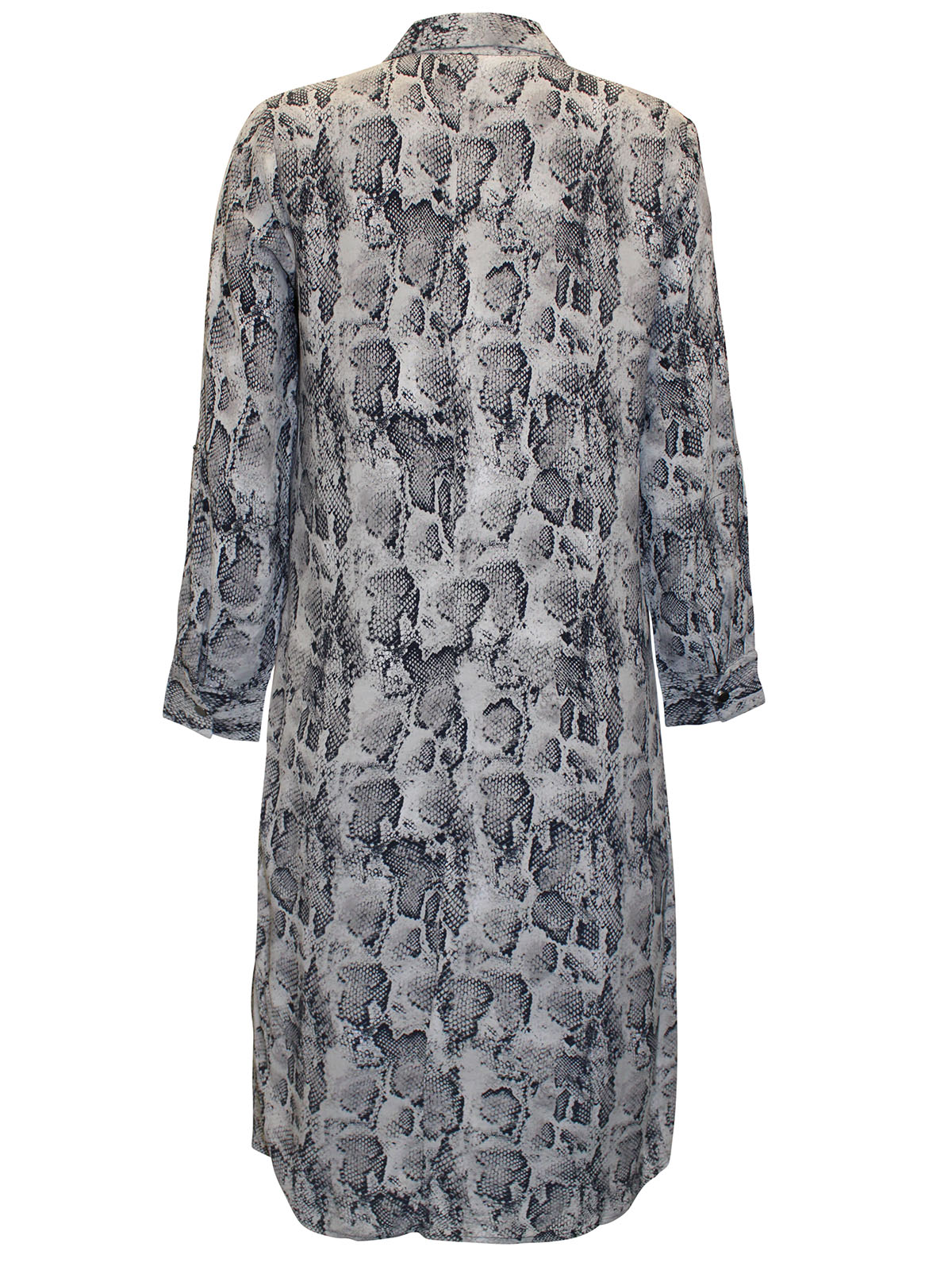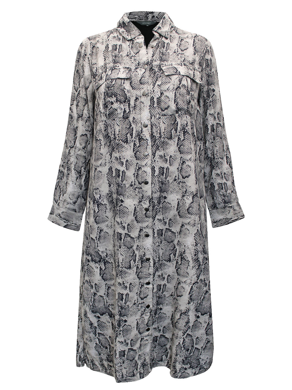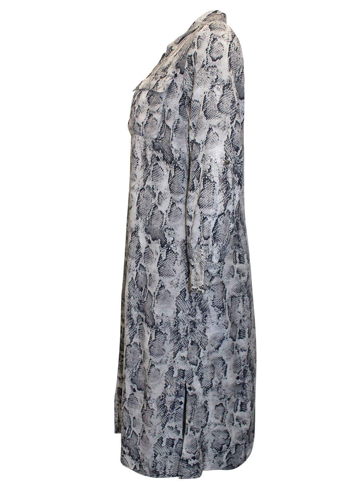 Who doesn't love animal print? Featuring a collared neckline, long sleeves, button fastenings and two chest pockets. Length 116cm. No belt.