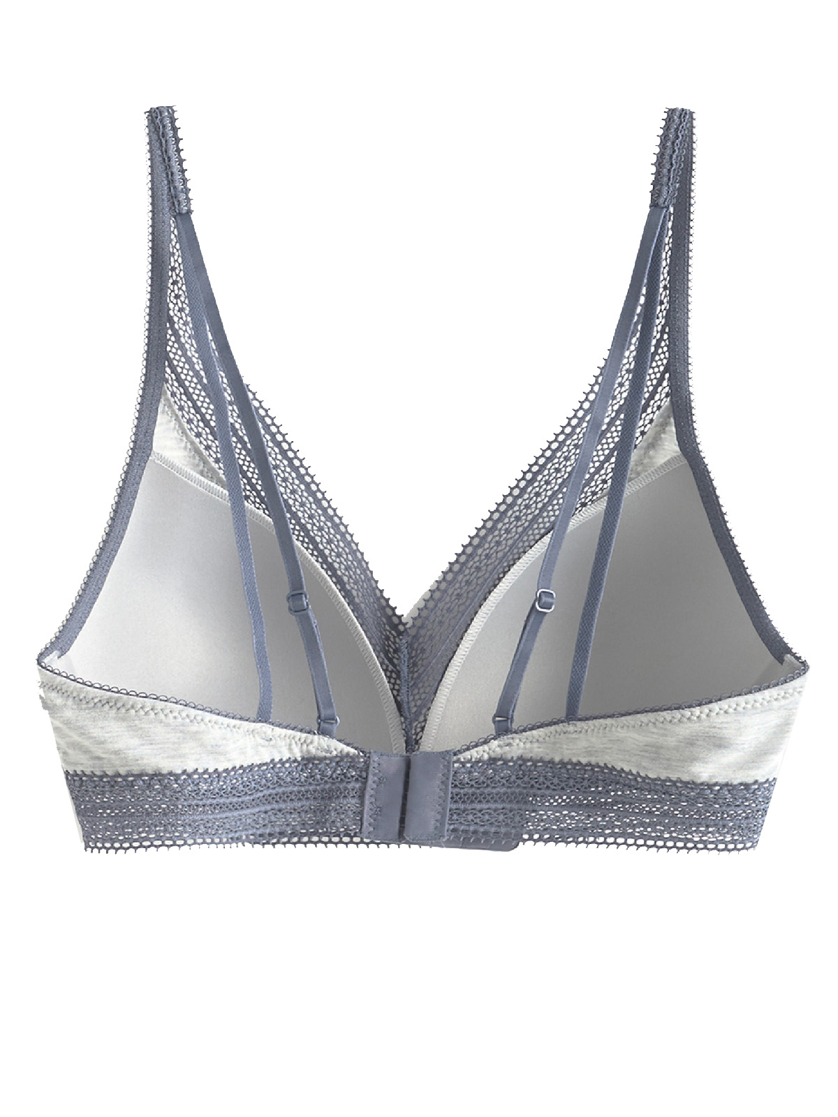Non-wired and lightly padded. Lace detail at the neckline and underband. Adjustable straps and back fastening.
