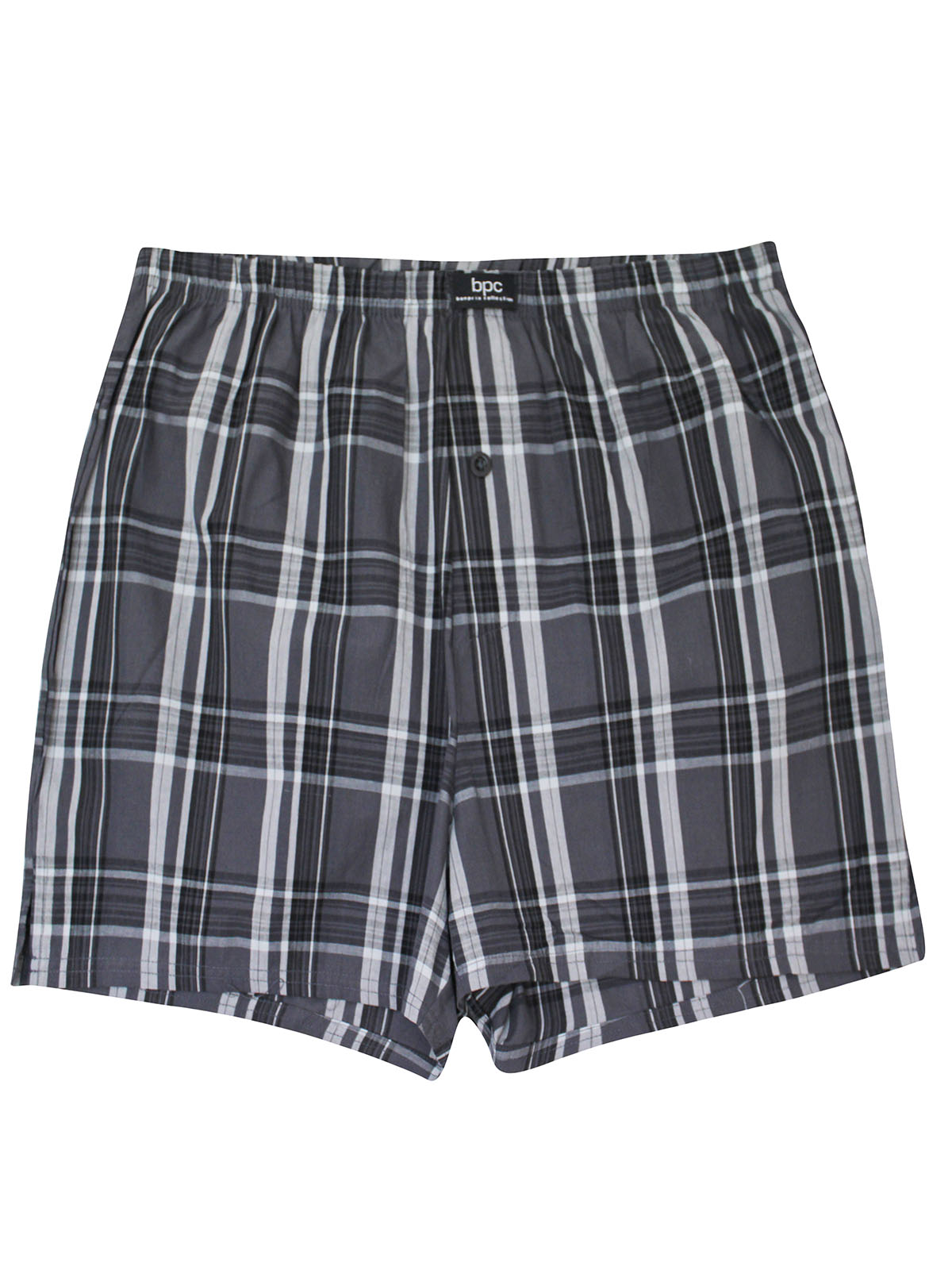 BPC GREY Pure Cotton Checked Button Front Woven Boxers - Size M to 5XL