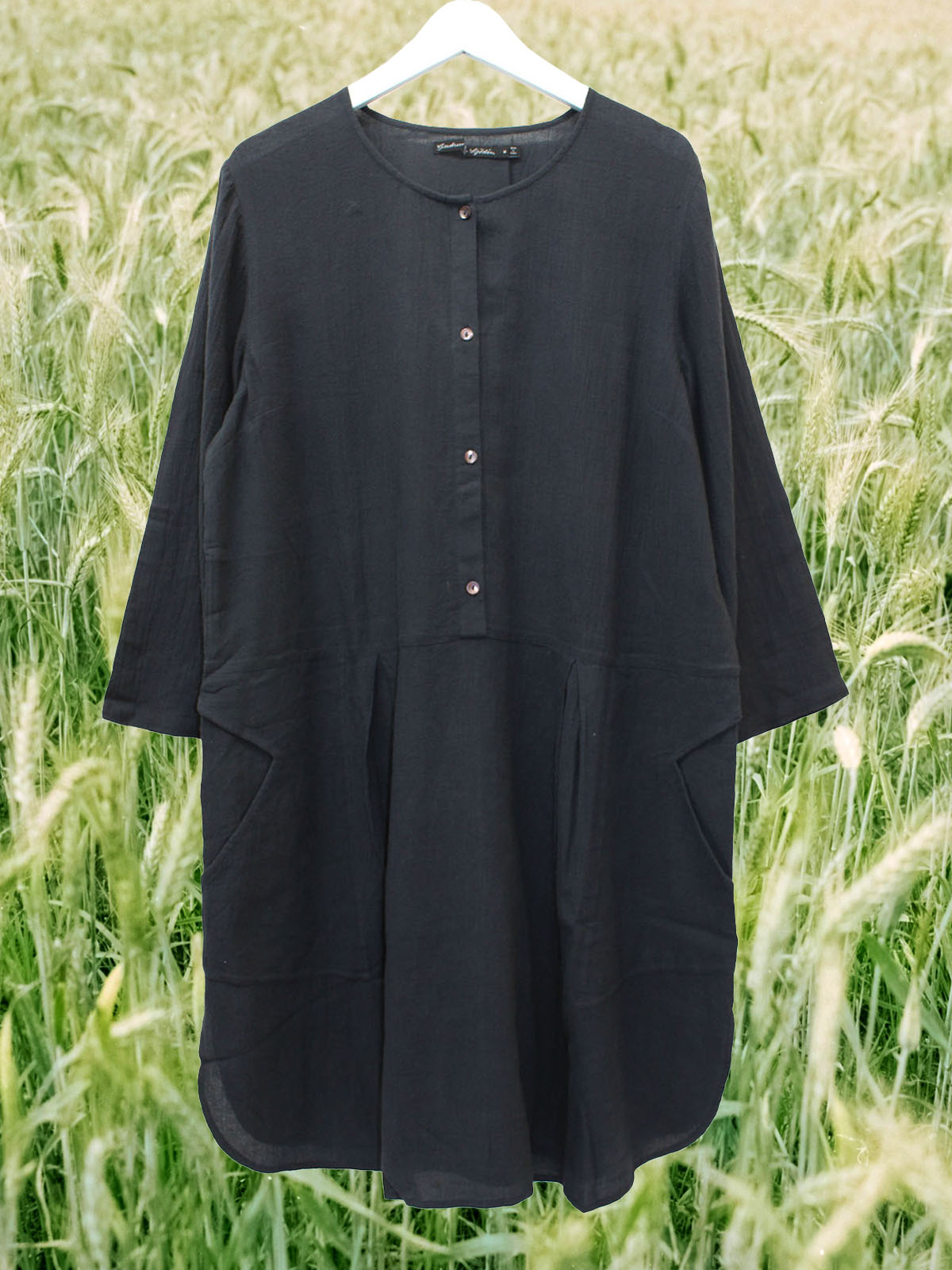Navy button front dress. Length 37in |