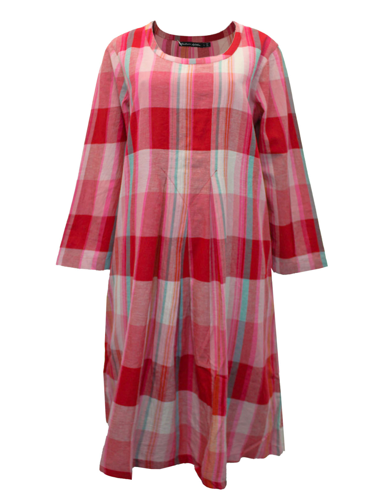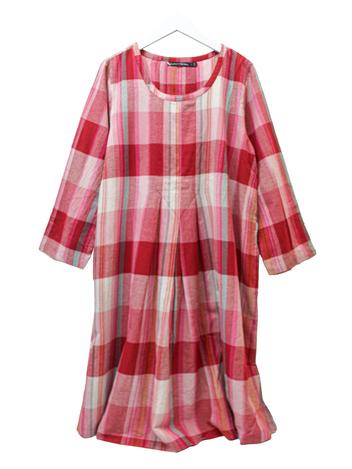 Red check 3/4 sleeve dress. Length 41in |