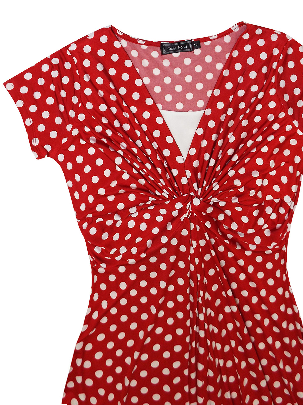 Designed with the latest trends in mind. Crafted from a stretch fabric with an all over print. With a mock layer v-neck, short sleeves and twist feature at the front. Length 42in. Note: Contain pulls front or back or side.