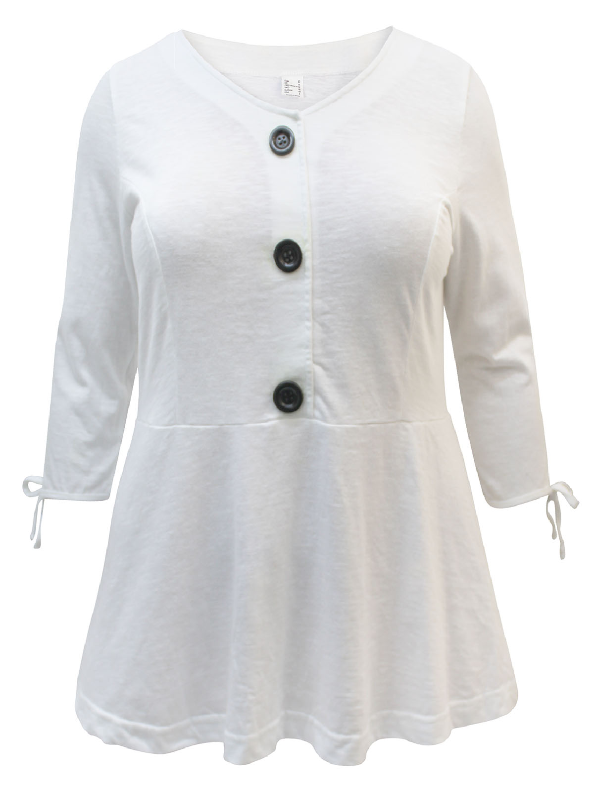 Pure Cotton Button Front Tie Sleeve Peplum Top