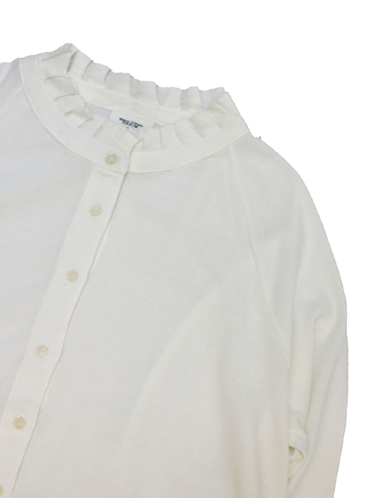 Step into effortless style with this charming ruffled blouse. Crafted from a textured fabric, featuring a high neckline, button front, long sleeves and frill trims. Length 25in.