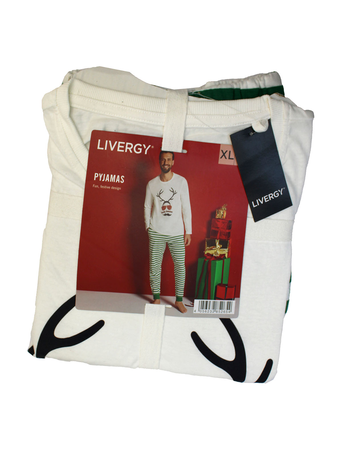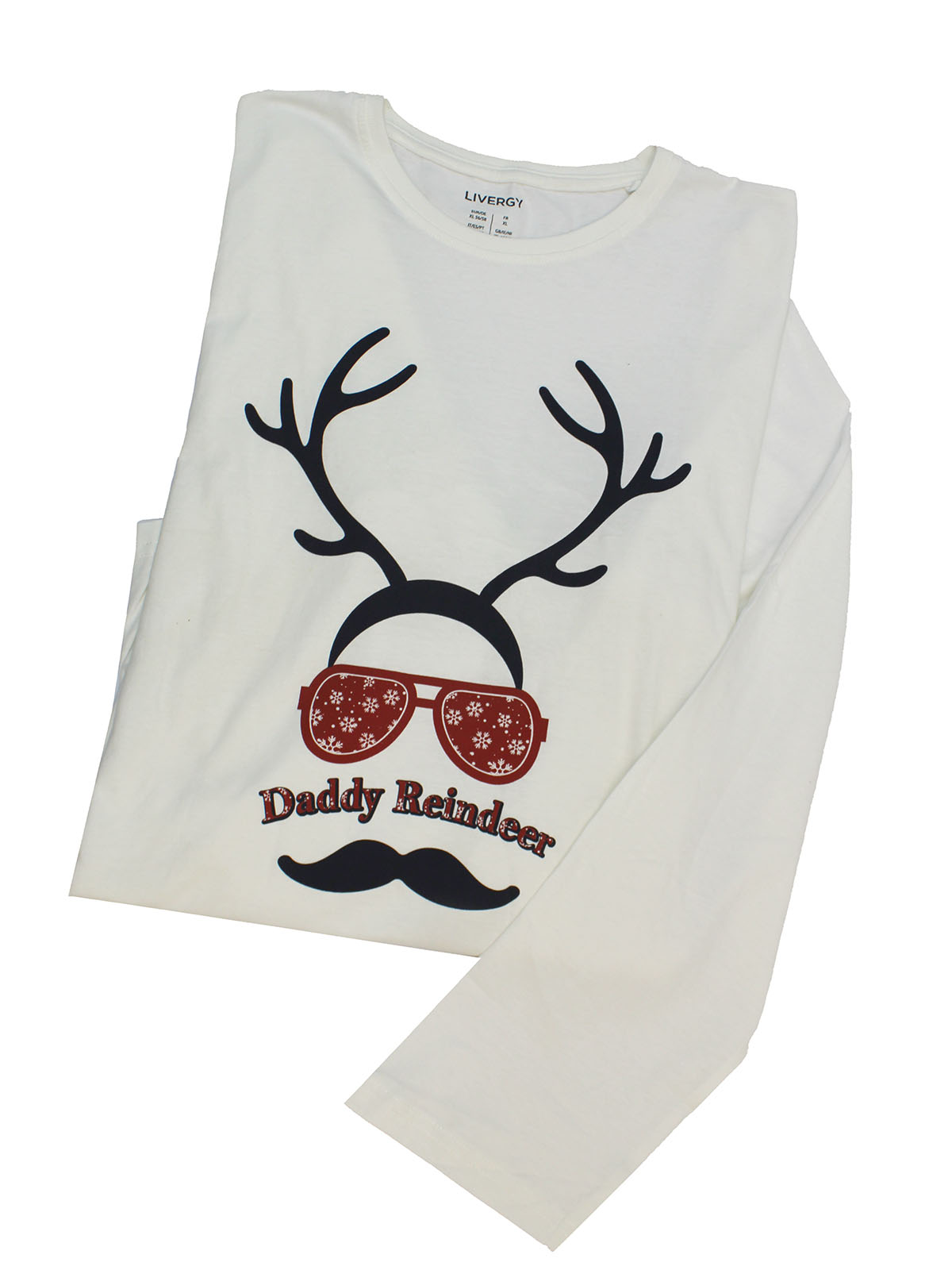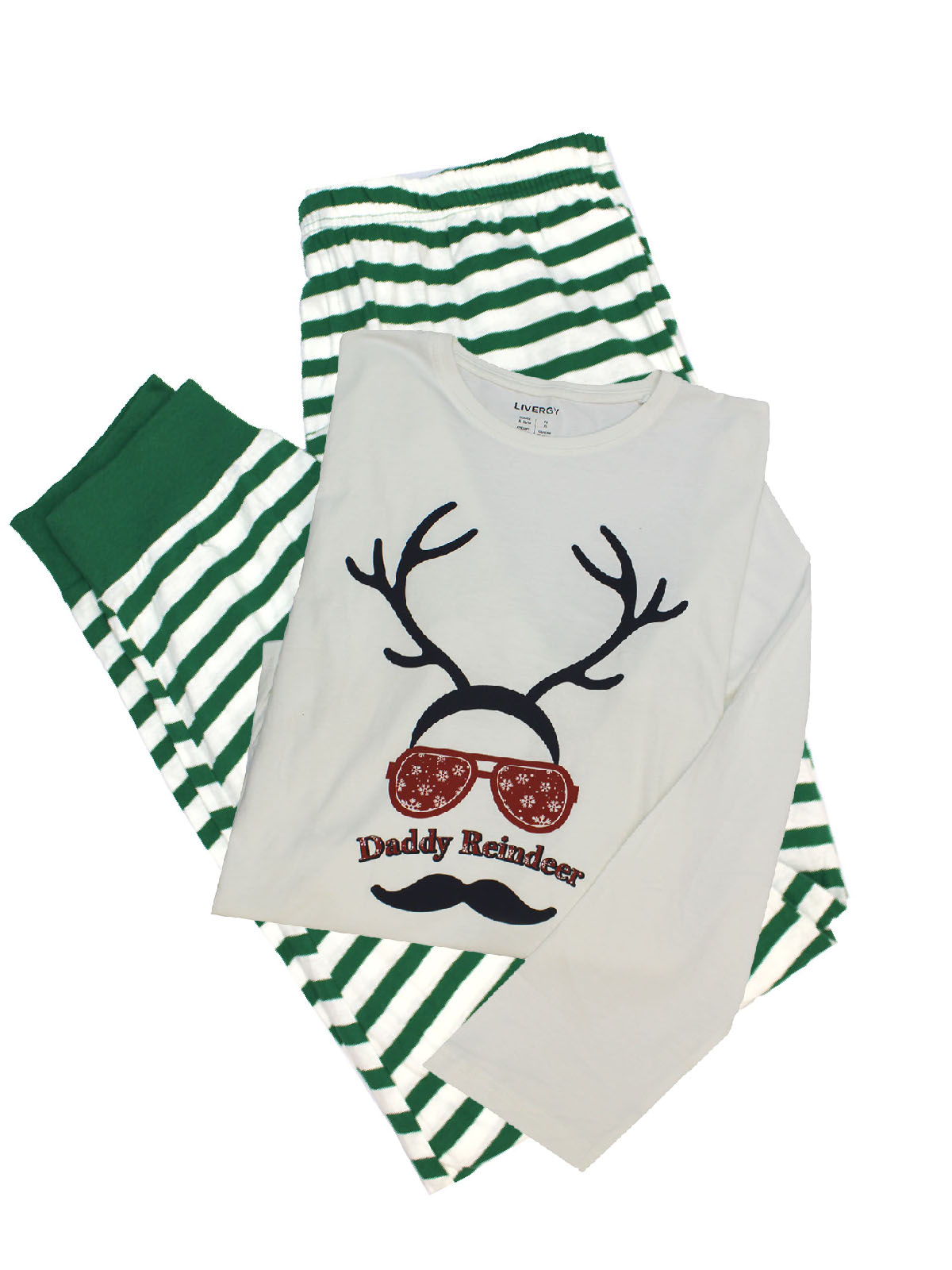 Get set for Christmas in these pyjamas, festive printed pyjama bottoms with matching reindeer motif long sleeved top. The top features a crew neckline, long sleeves and 'daddy reindeer' print to the front. Matching full length bottoms with an elasticated waist and side pockets. Lengths; top 29in, bottoms 31in inside leg.