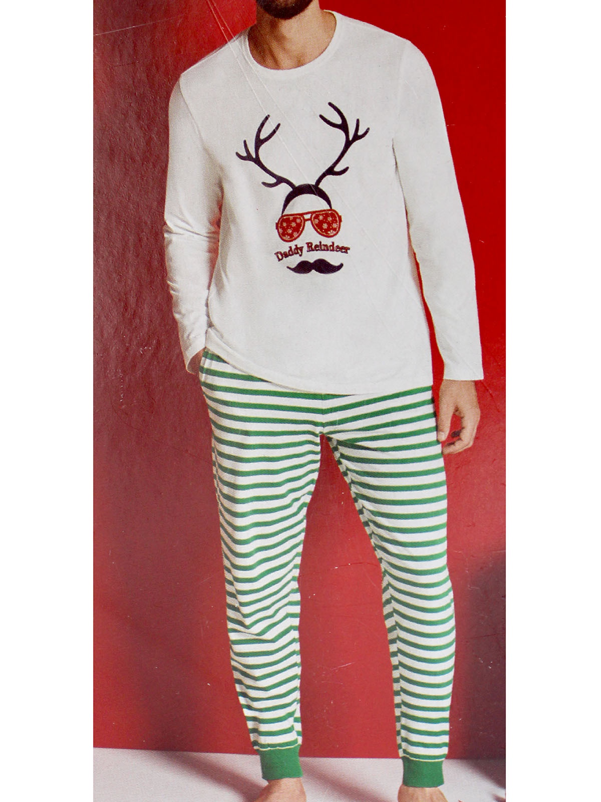 Mens Pure Cotton Festive Christmas Daddy Reindeer Pyjama Set