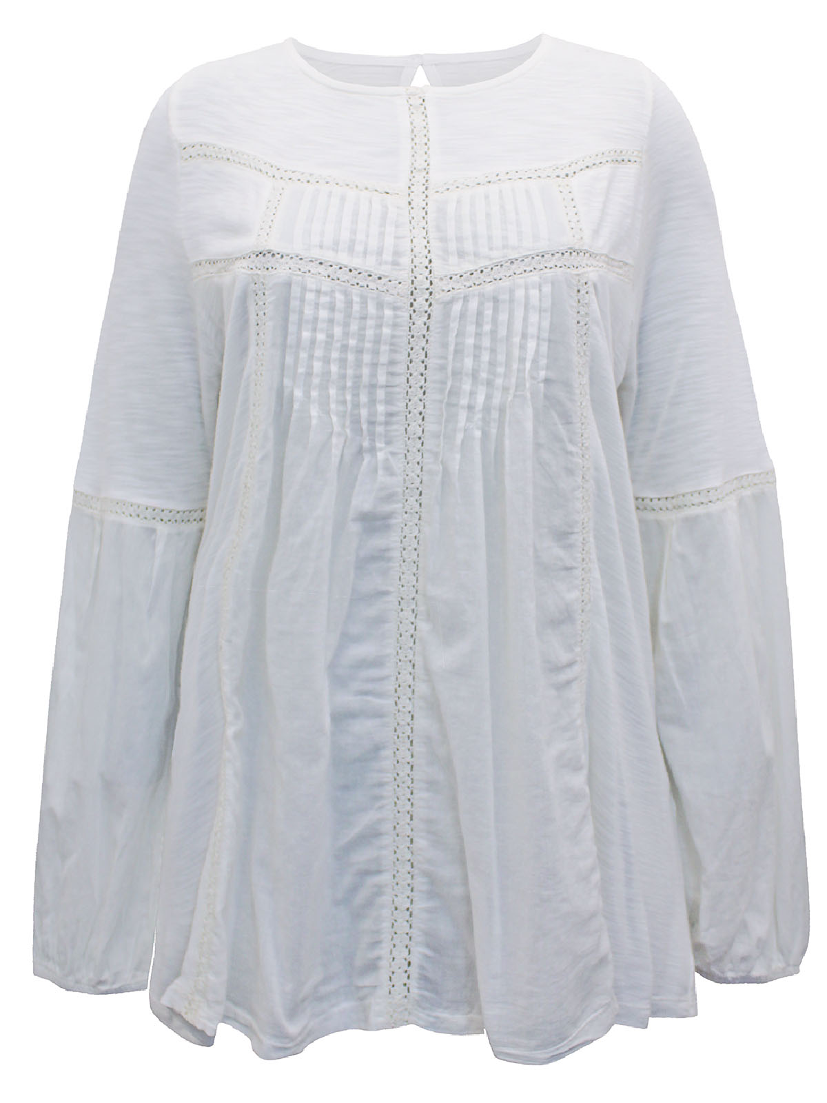 IVORY Pintuck & Lace Blouson Sleeve Blouse - Size 8 to 12