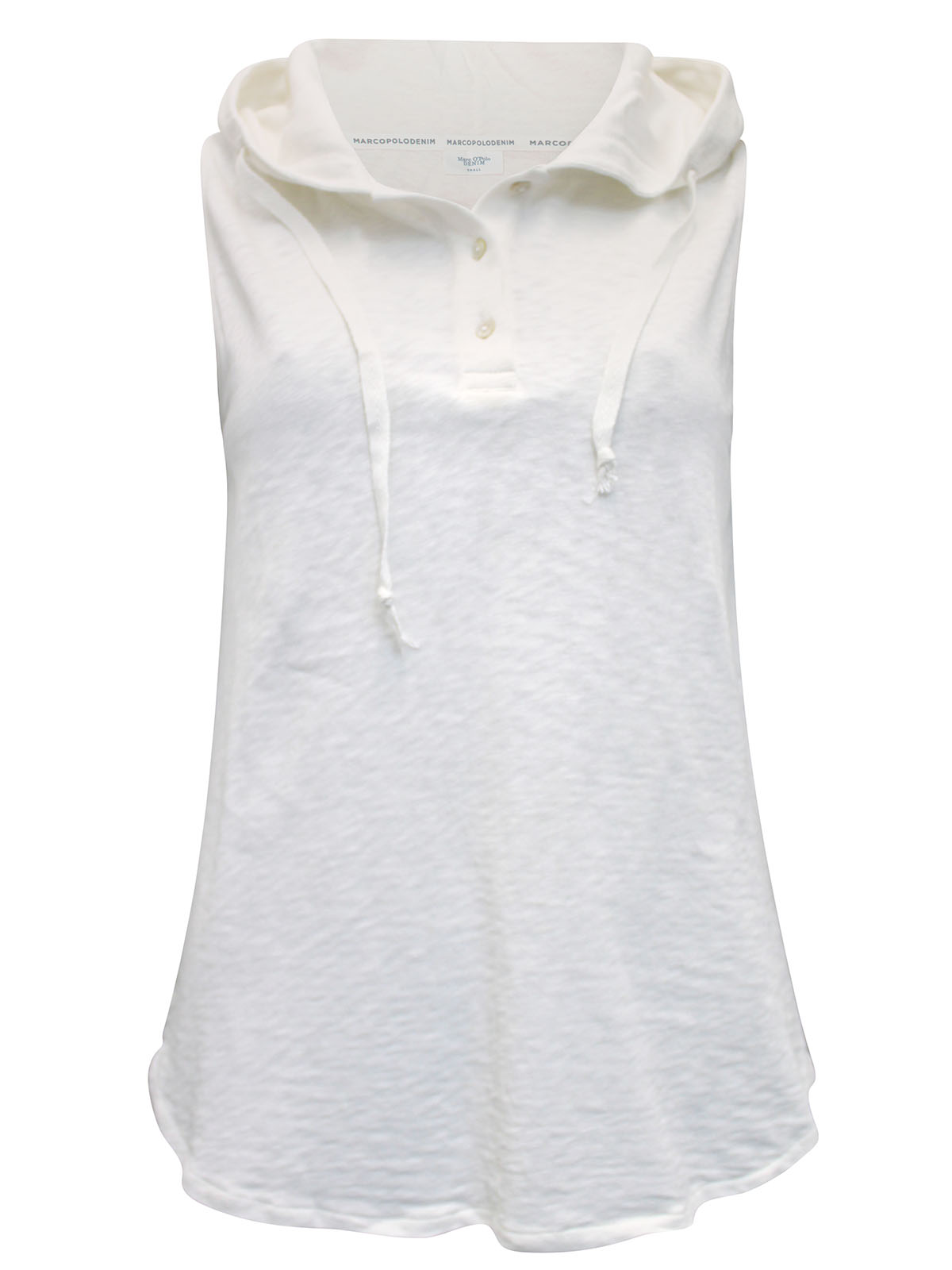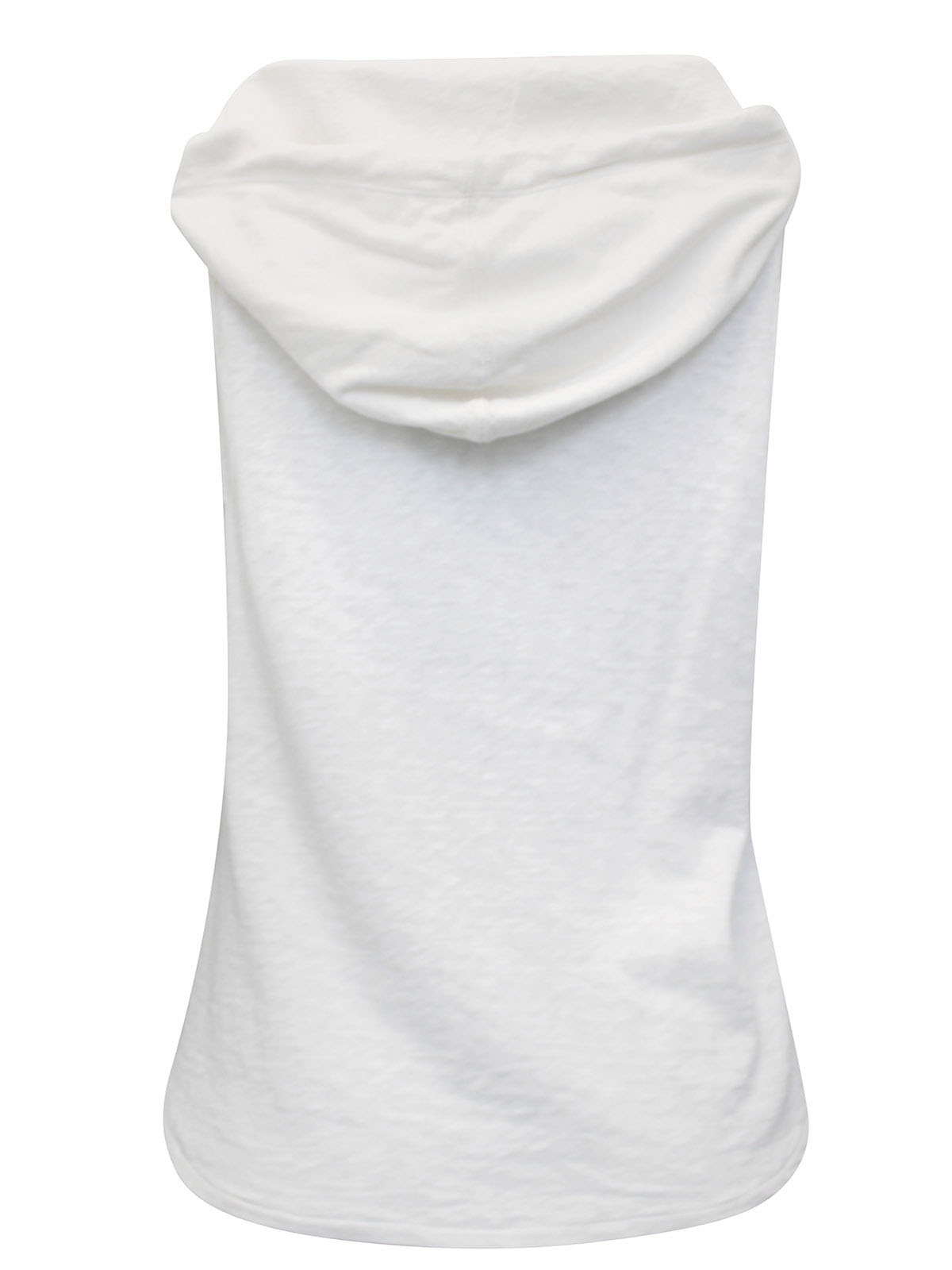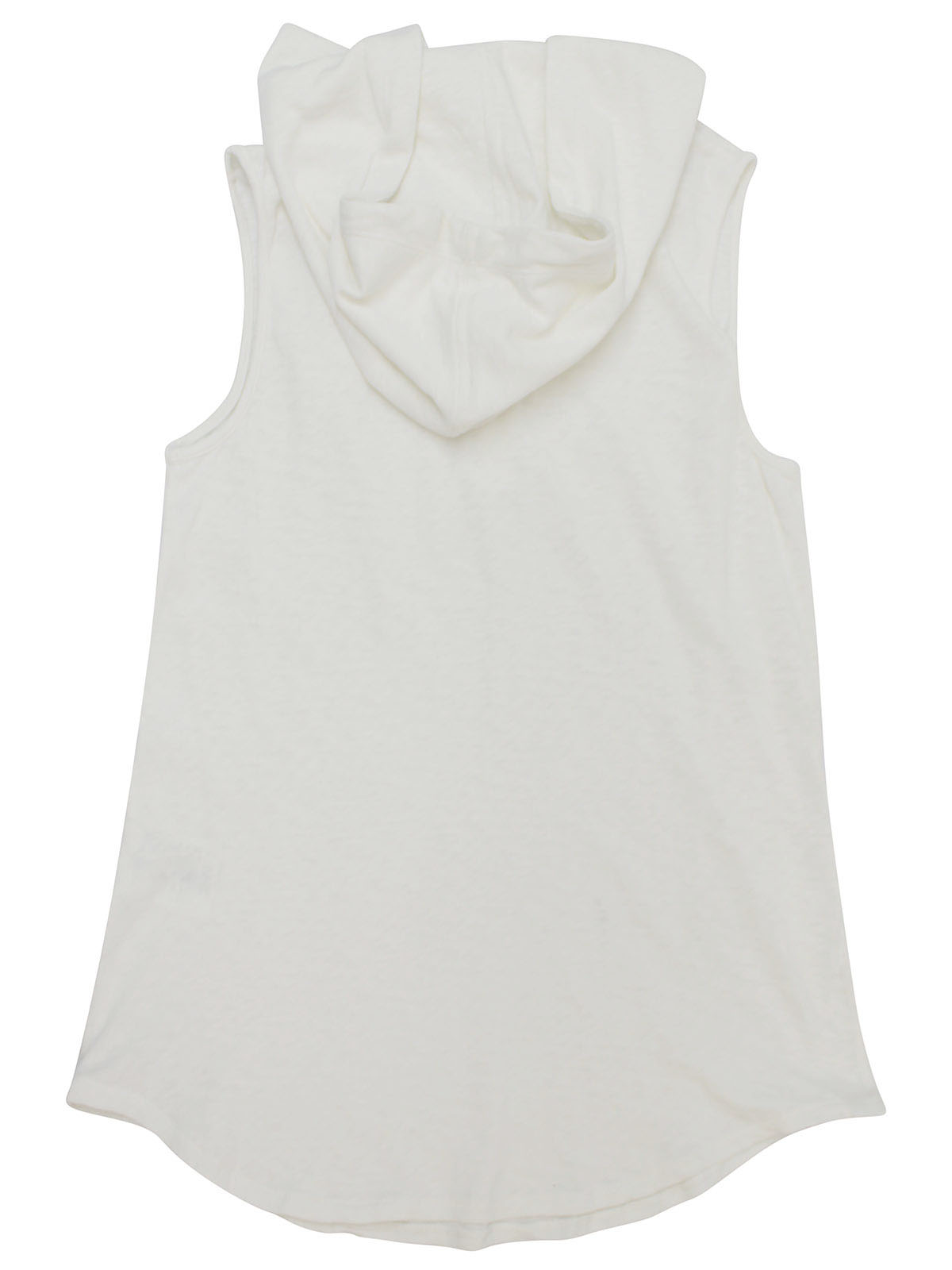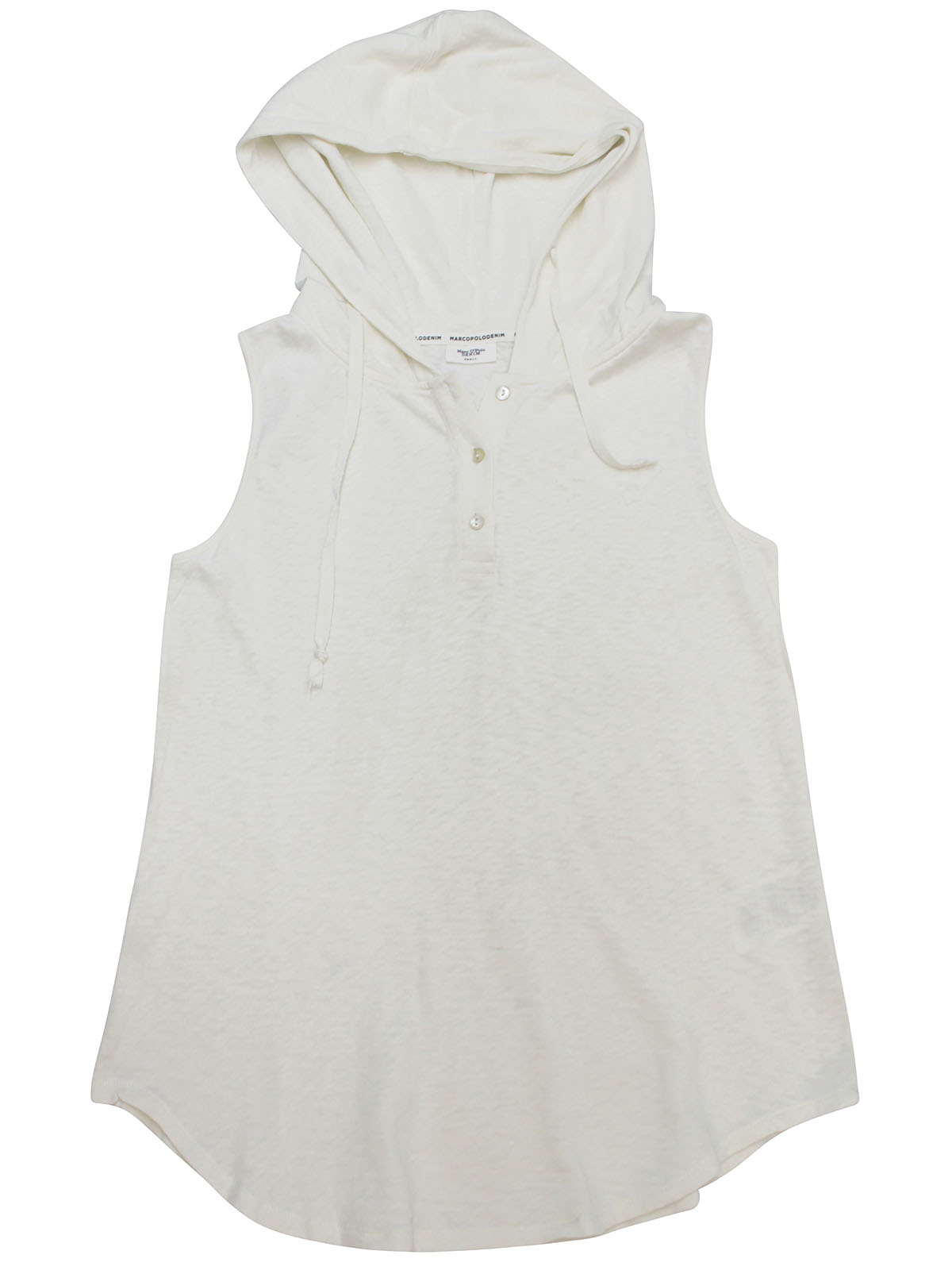 featured in a sleeveless silhouette with classic hood, defined drawstring,