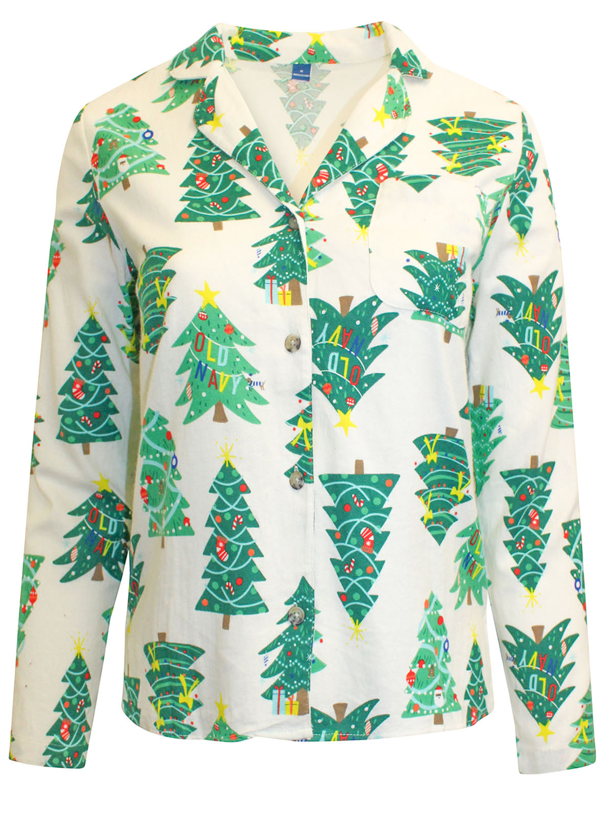Pure Cotton Oh Christmas Tree Print Flannel Pyjama Top