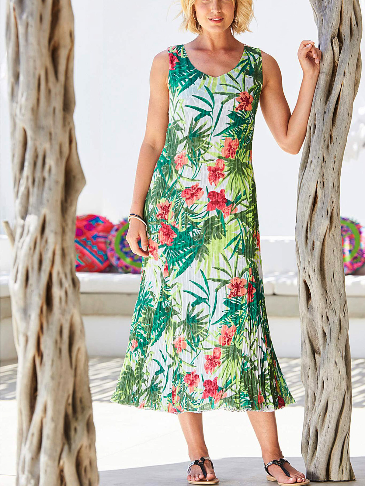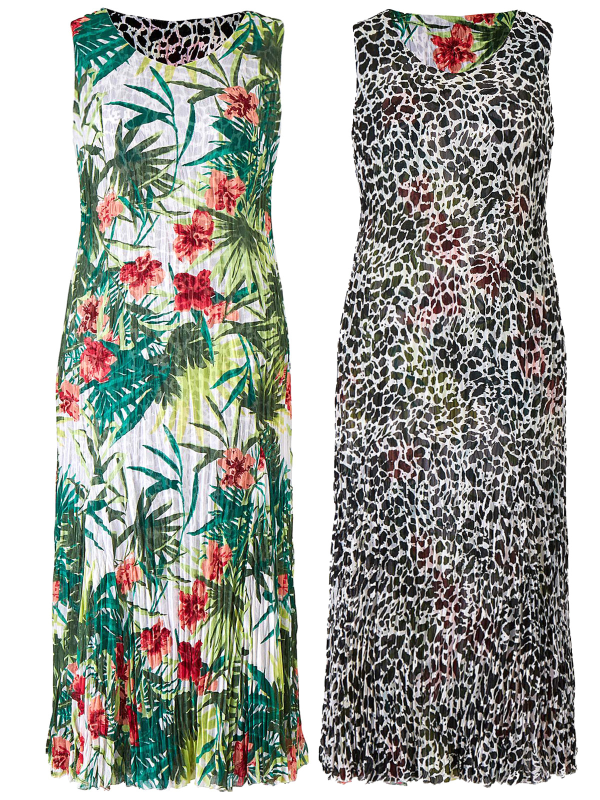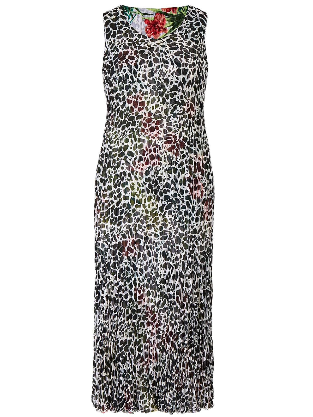 This flattering sundress is fully reversible featuring two striking prints. The sleeveless mid-length dress is cut from an easywear crinkle fabric perfect for summer. Length 48in/122cm.