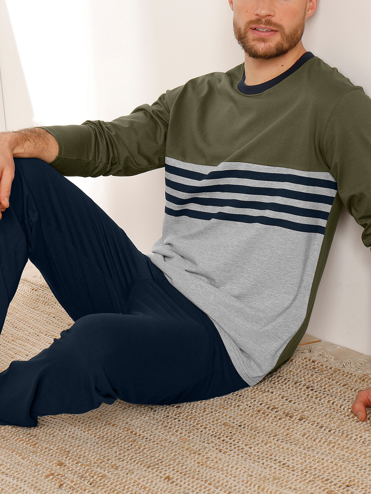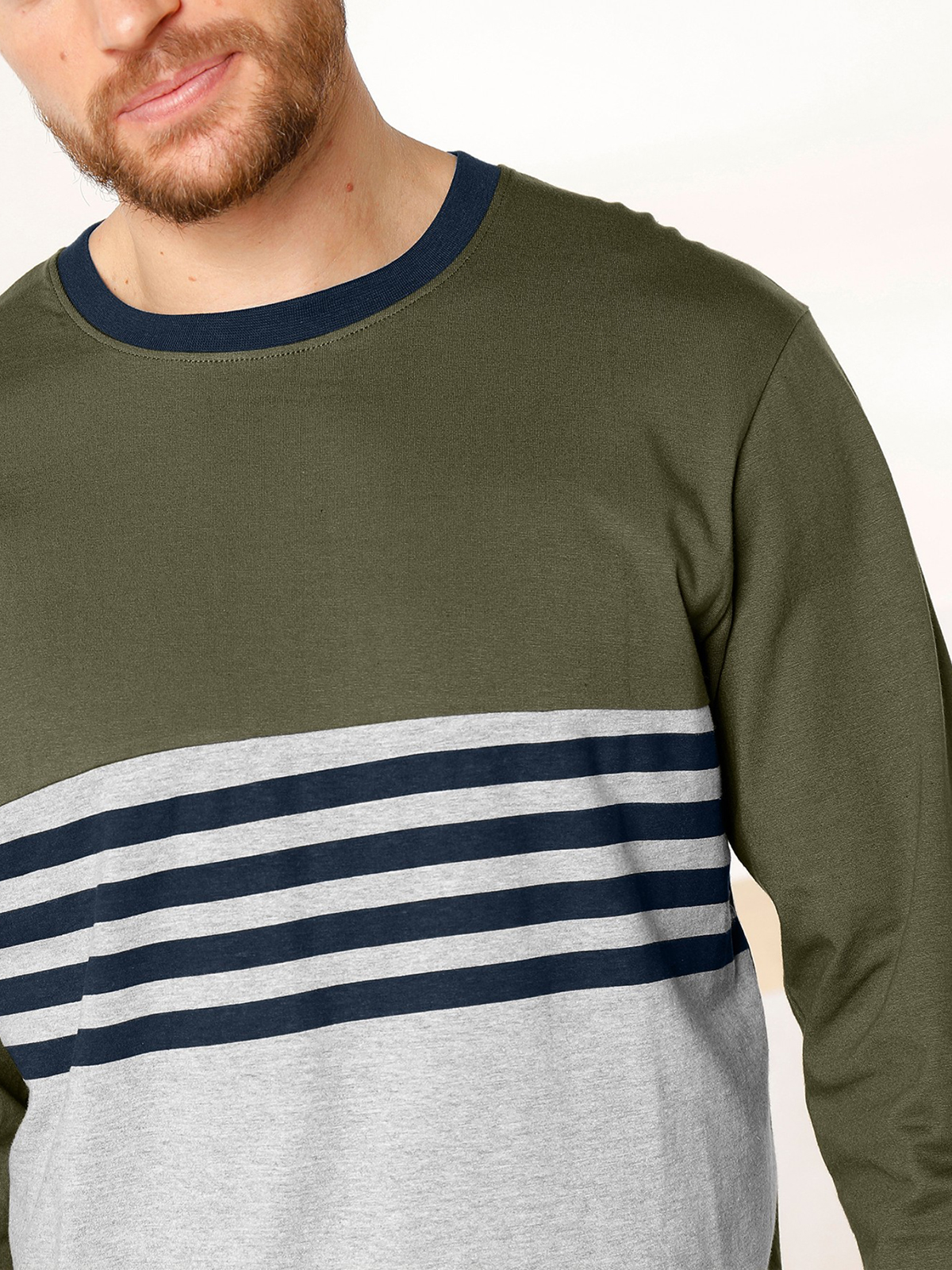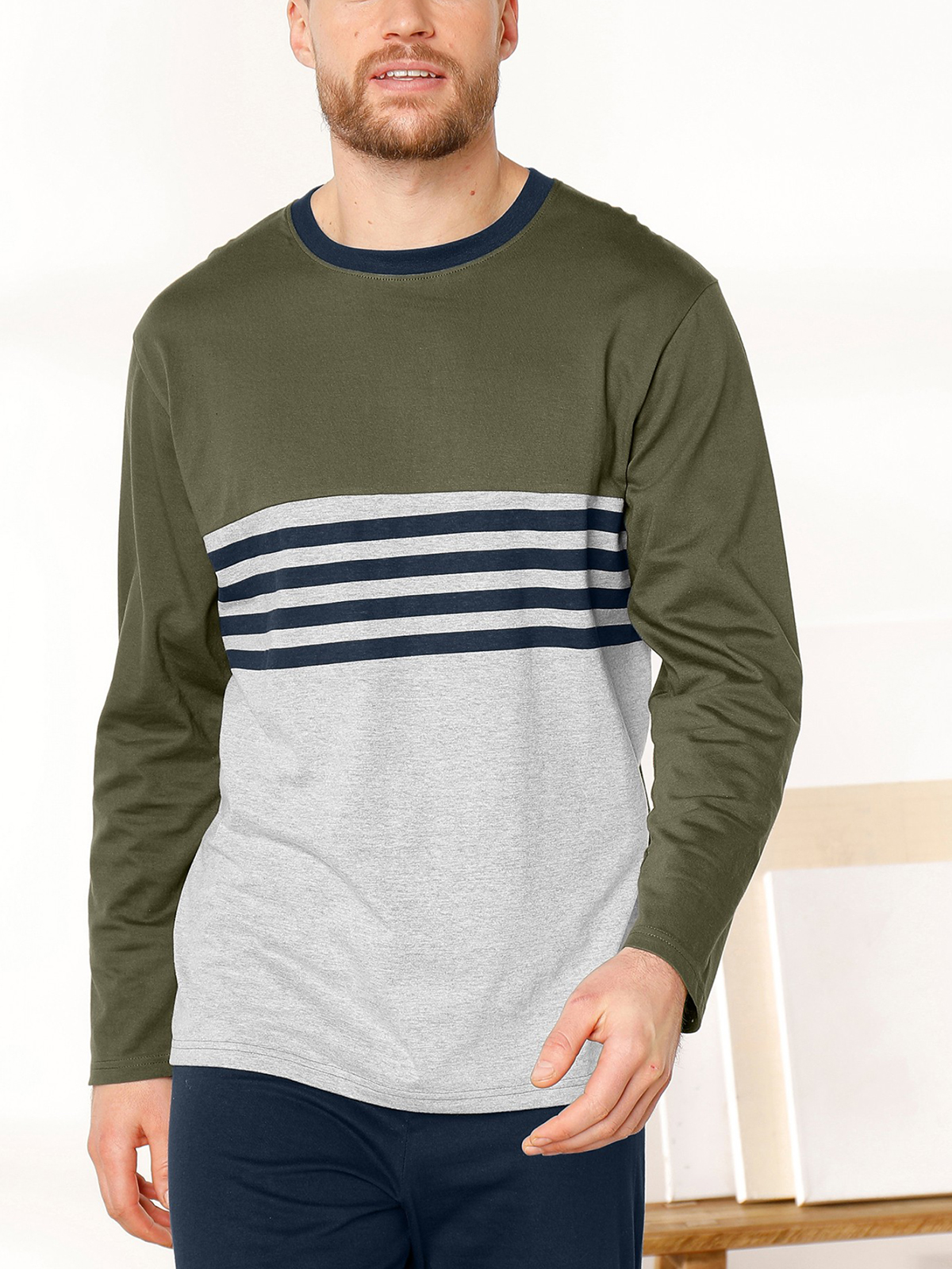 This pure cotton loungewear top is perfect for a laid-back weekend. Regular fit, with long sleeves and a striped panel. Length 31in. Sleeve 21in.