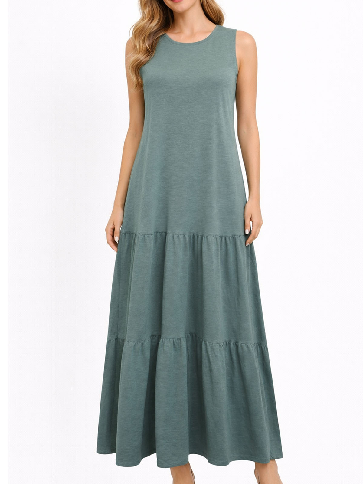 Meet your new favorite dress. Made from a cotton fabric, in a sleeveless design it features a scoop neckline and finishes in a tiered style. Lengths; Petite 48in, Regular 50in, Tall 52in..