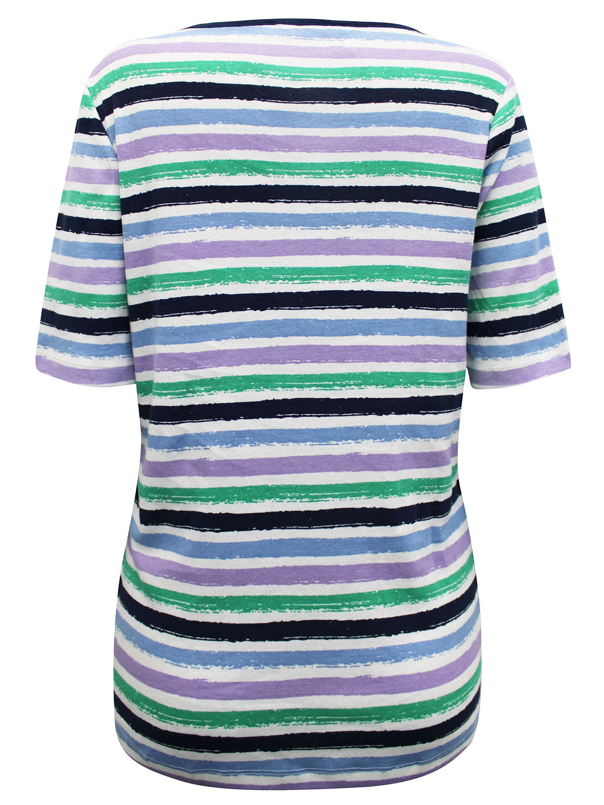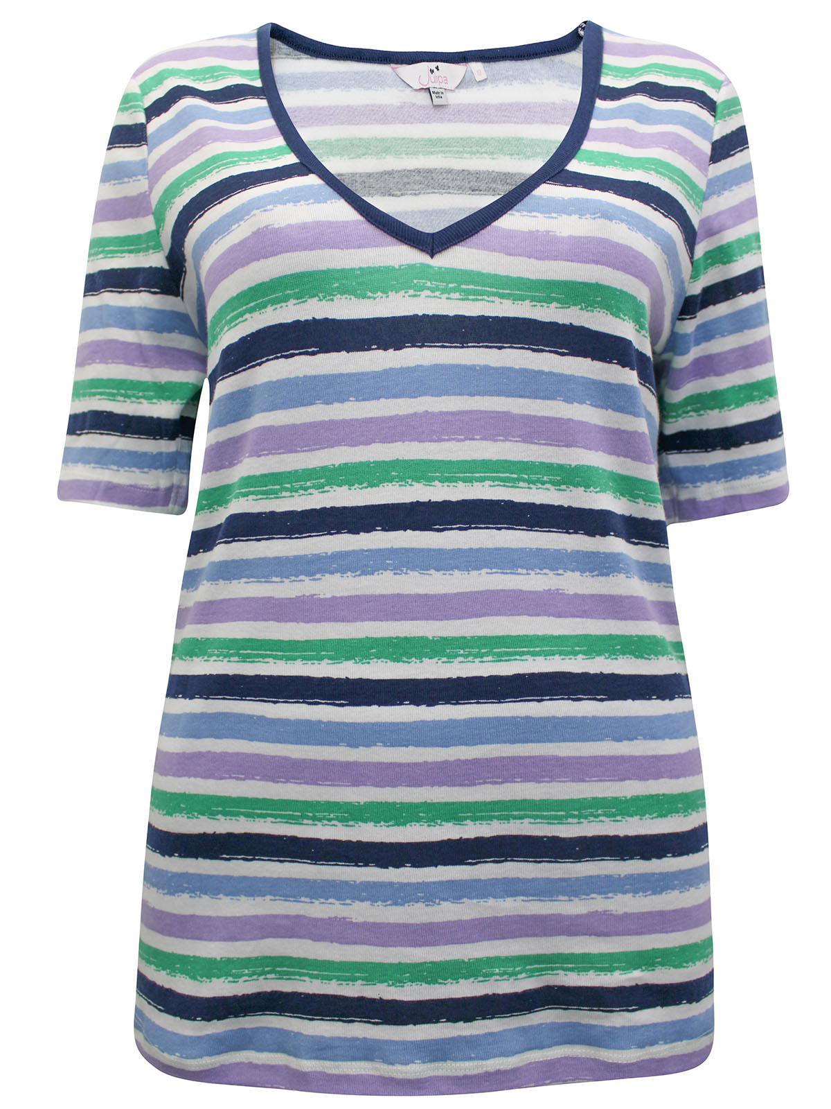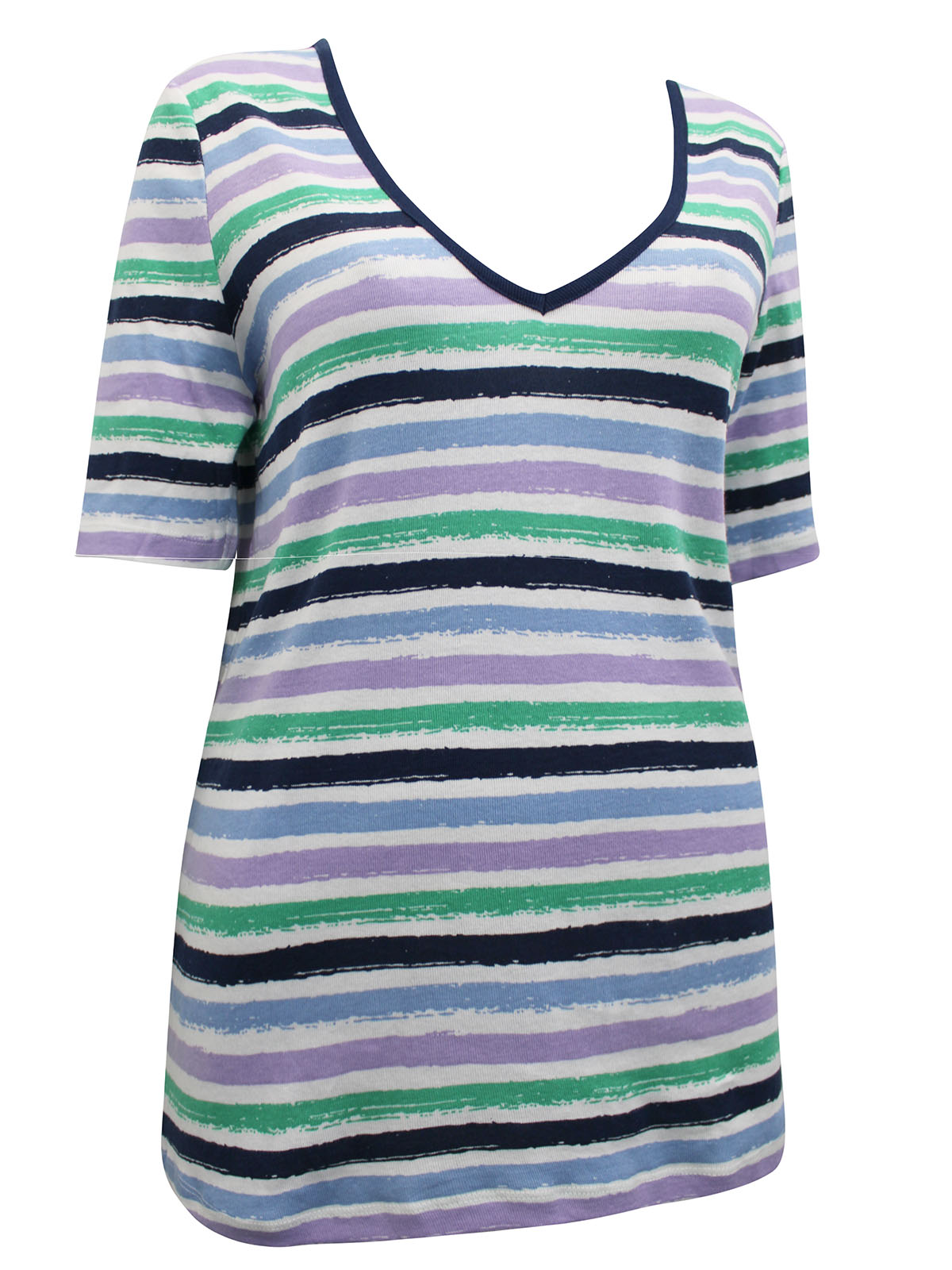 Designed in soft cotton for ultra comfort, this top is perfect for wearing as a layering piece or worn on its own. Featuring a v-neckline, short sleeves and stripe print. Length 25.5in.