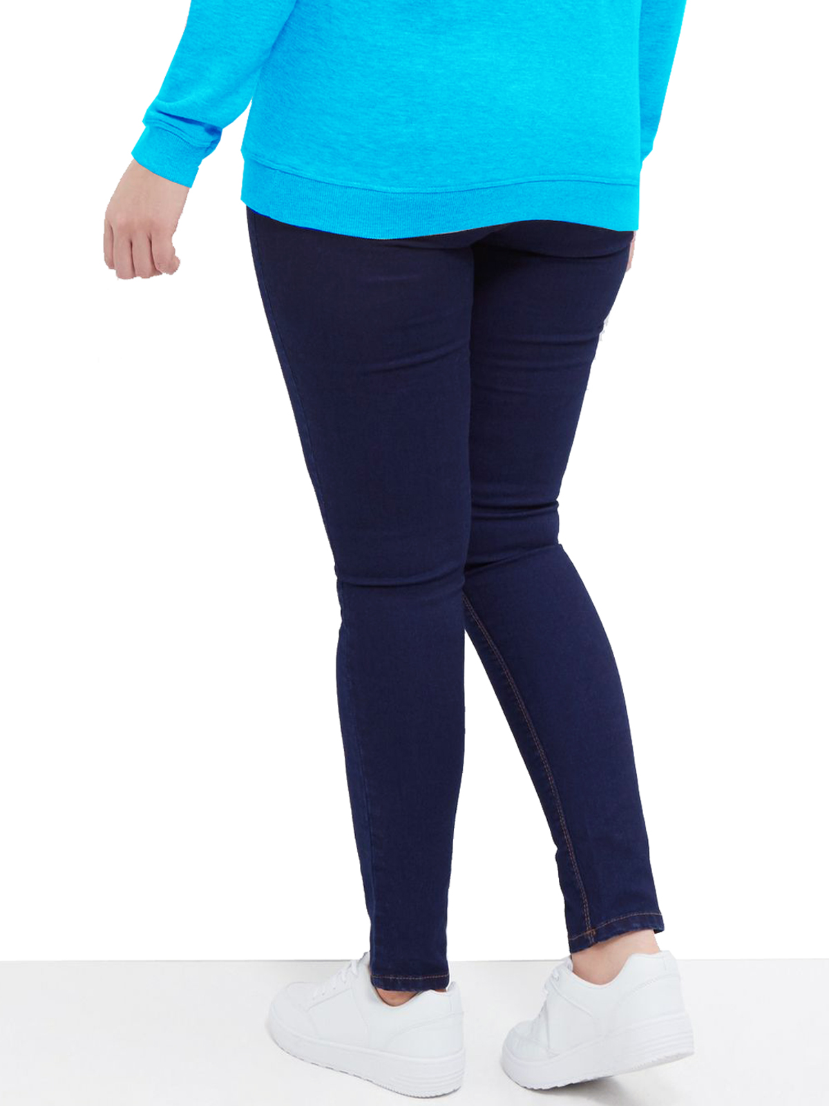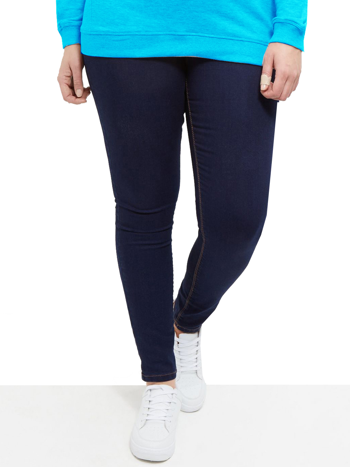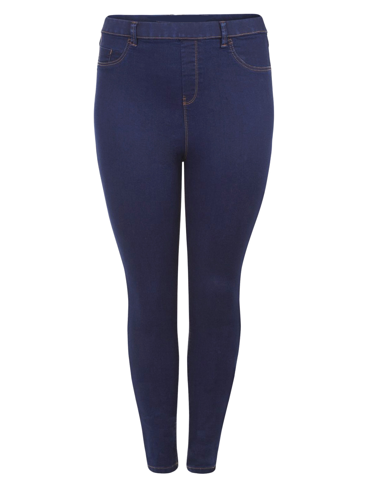 Plus size indigo blue jeggings with functional pockets to the back and imitation pockets to the front. Added stretch.