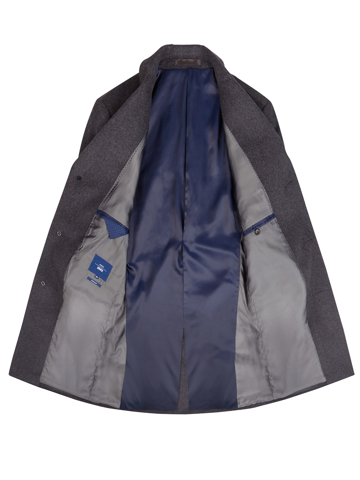 Features: button fastening down the front, slanted pockets, single back vent, notched label with detailed under-collar, Mid-length fitting. Length on the Regular Size 38R is 38inches