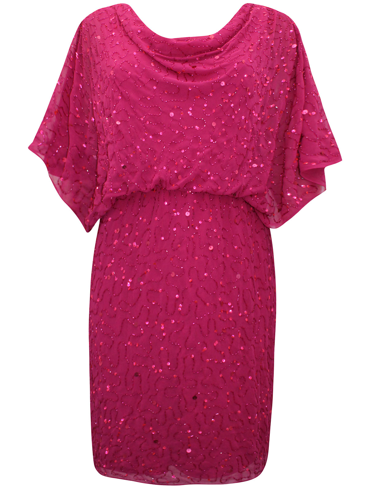 This stunning dress is designed with cape style grown-on sleeves that provide great arm coverage and it sits to a midi length. Featuring all over sequin and bead embellishment and on-trend cowl neckline, this dress offers glamorous style whilst still being easy to wear. Fully lined. Length 41in.
