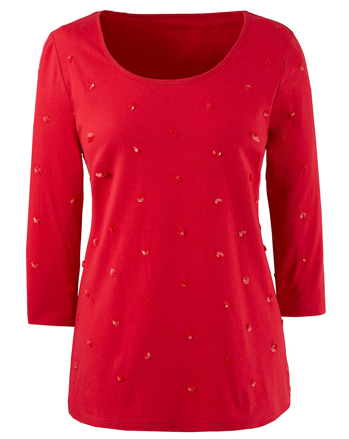 Sparkle through the season with our sequin jersey top. Scoop neckline and 3/4 length sleeves.. Length 25in/64cm.