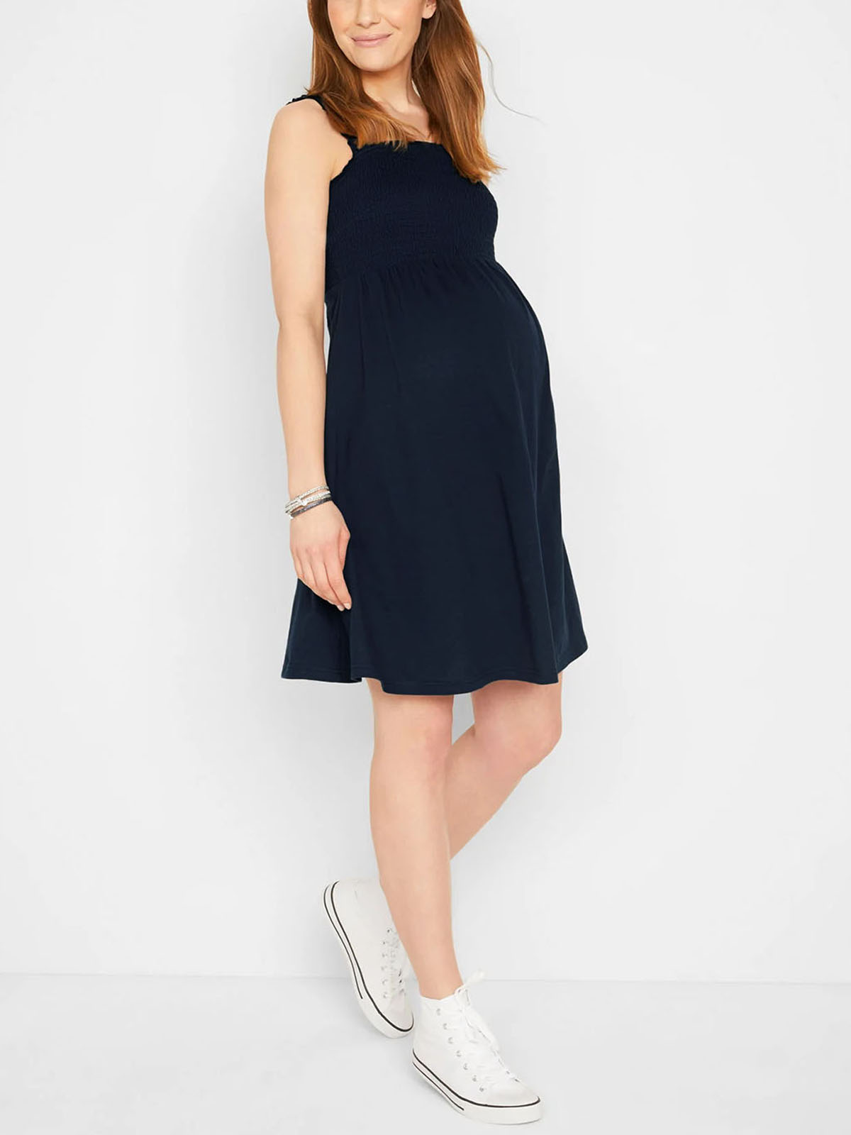 Pure Cotton Sleeveless Shirred Maternity Dress