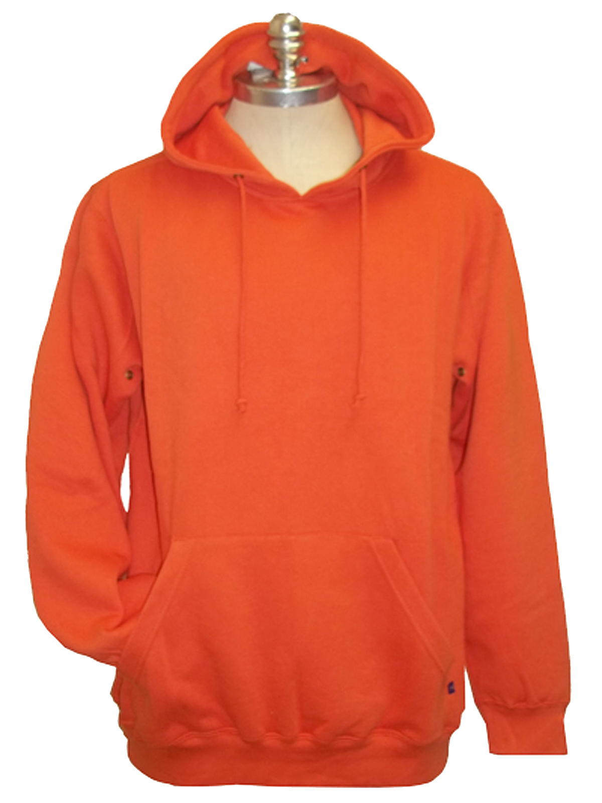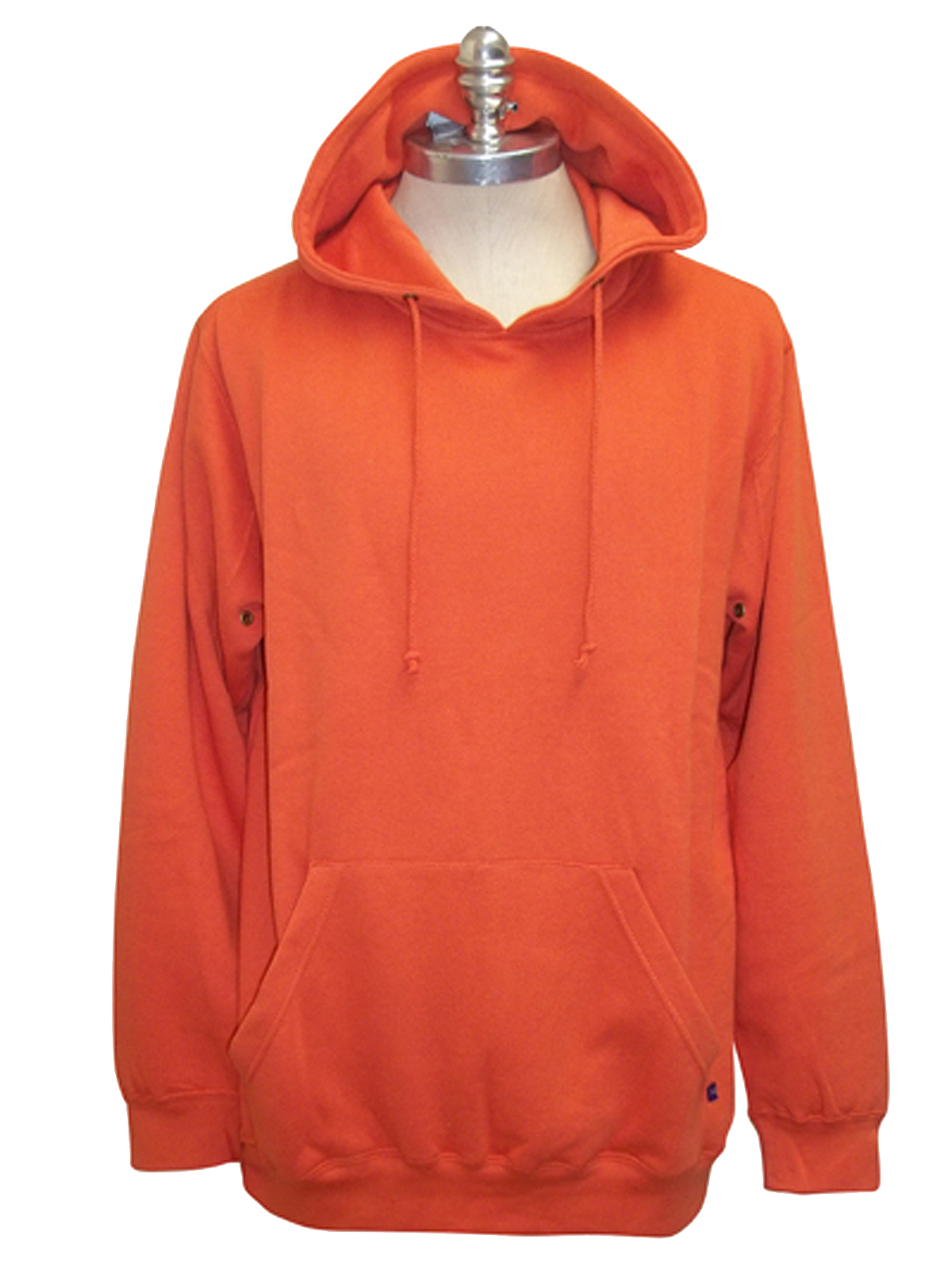 Great quality double layer hooded cotton rich sweatshirt with brush back fleece interior. Drop shoulder styling, with forward shoulder seam. Long sleeves with antique brass rivets underarms, kangaroo pockets to the front and drawcord at hooded neckline. Twin needle stitching. Fabric weight 300gsm.