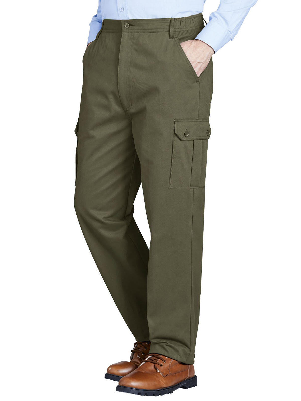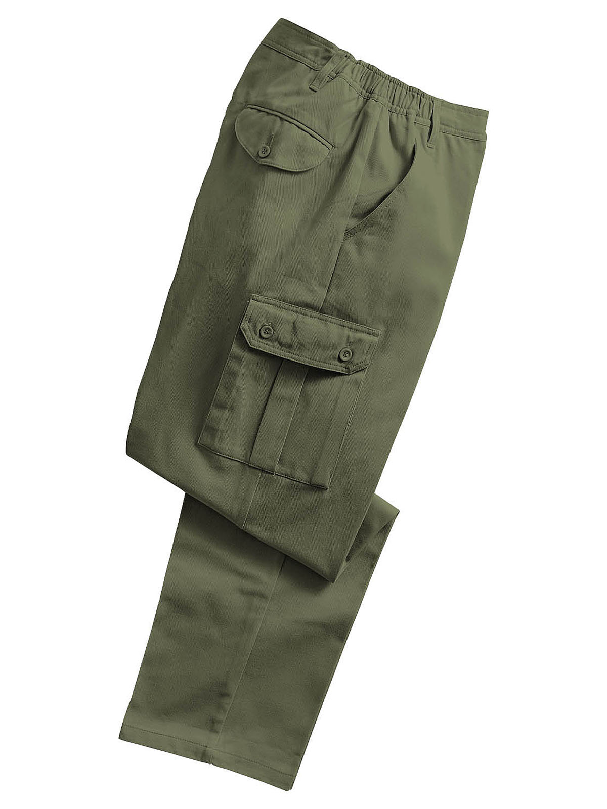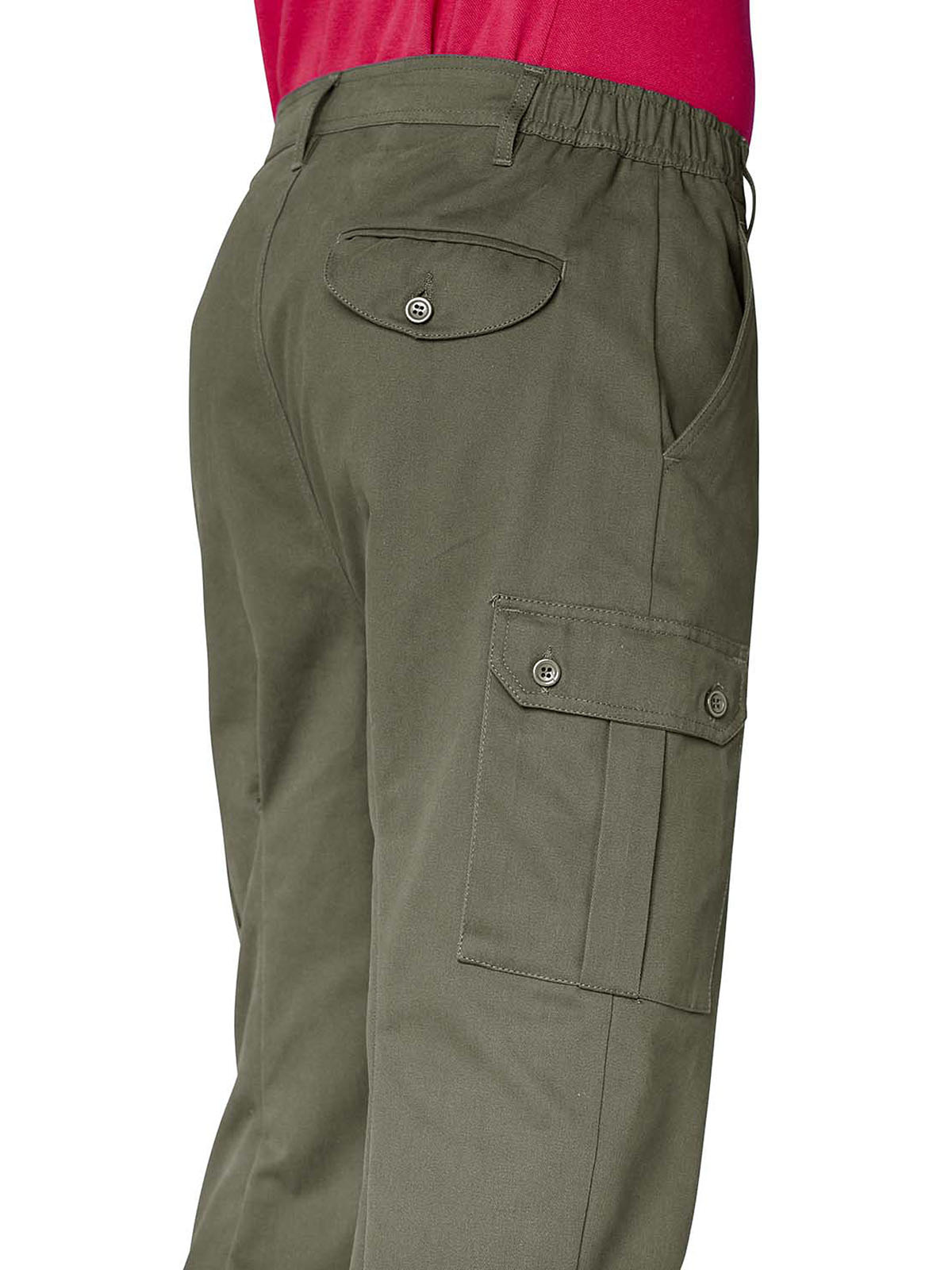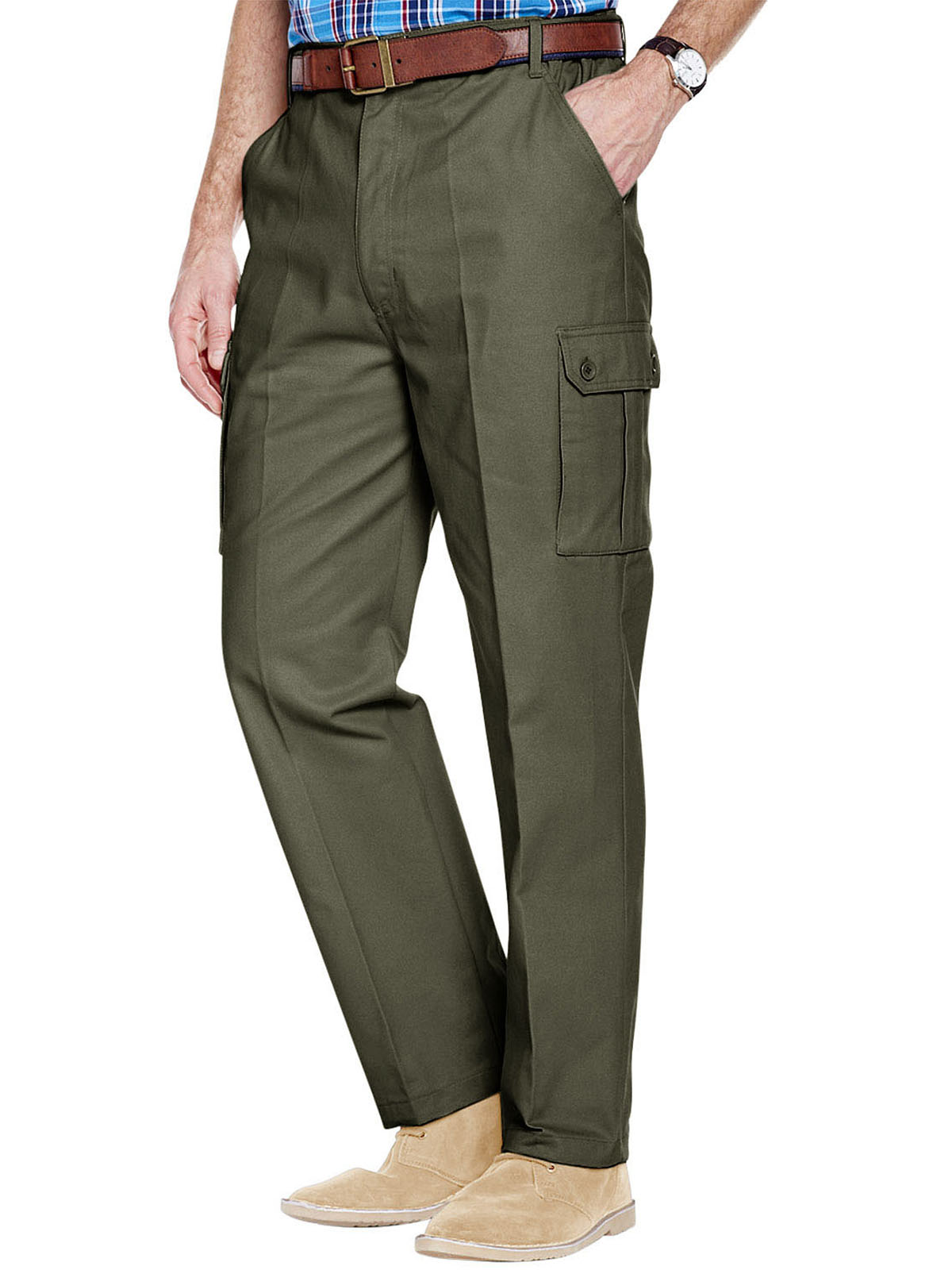 Embrace the utility trend with these cargo trousers. Made from a comfortable cotton fabric these practical cargo-style trousers are designed with large button-secured pockets to hold all of your essentials. With zip-fly fastening and side elastication at the waist. Lengths; 27in, 29in, 31in-33in.
