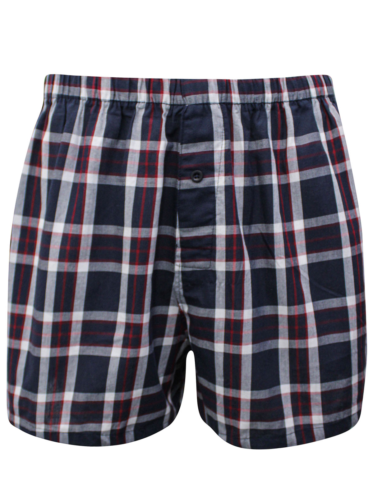 BPC NAVY Pure Cotton Checked Button Front Woven Boxers - Size M to 4XL
