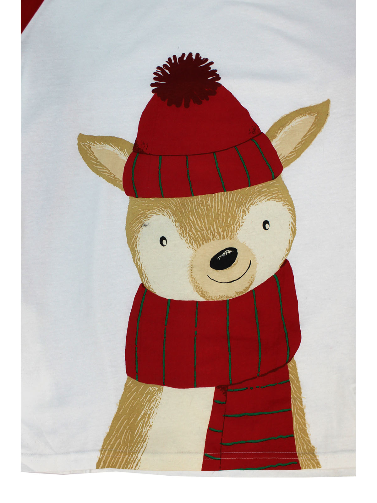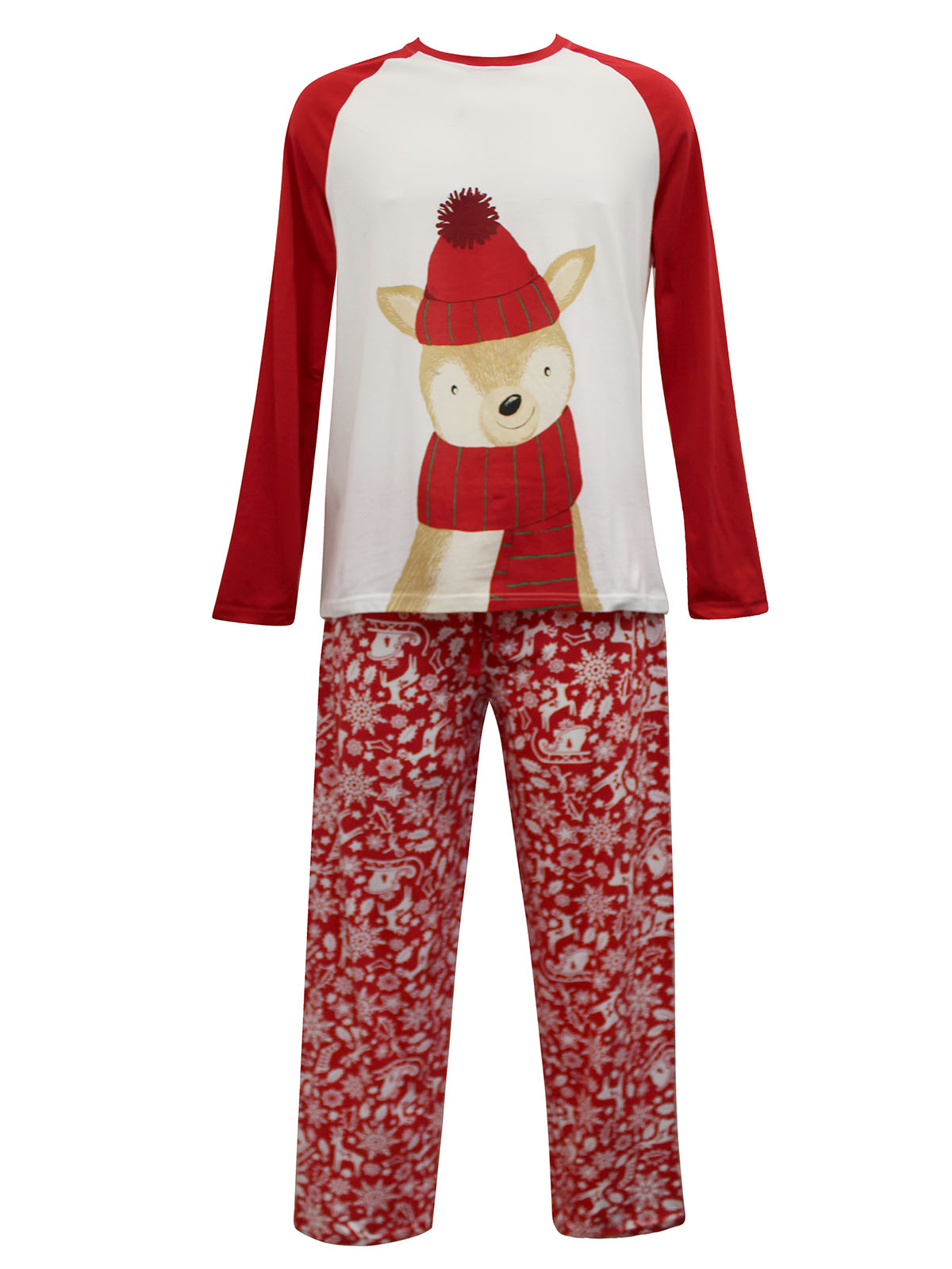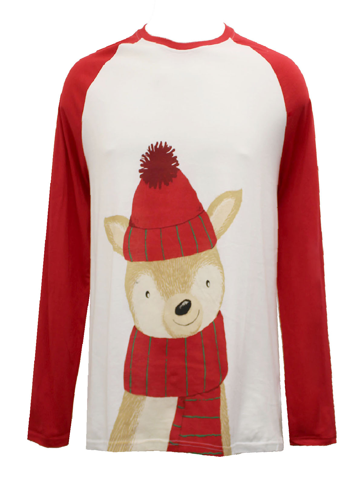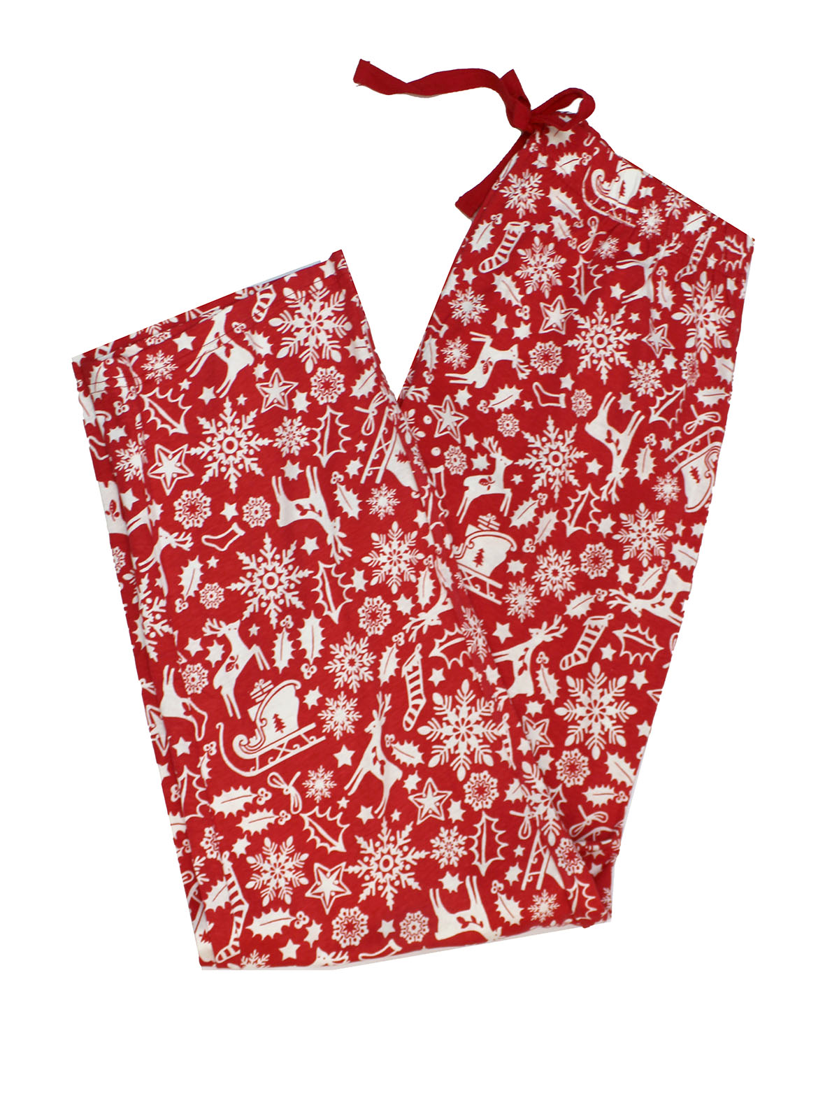 Get set for Christmas in these pyjamas, festive printed pyjama bottoms with matching reindeer motif long sleeved top The top features a screw neckline, long sleeves and print to the front. Matching full length bottoms with an elasticated waist and drawcord detail. Lengths; top 28in, bottoms 30in inside leg.