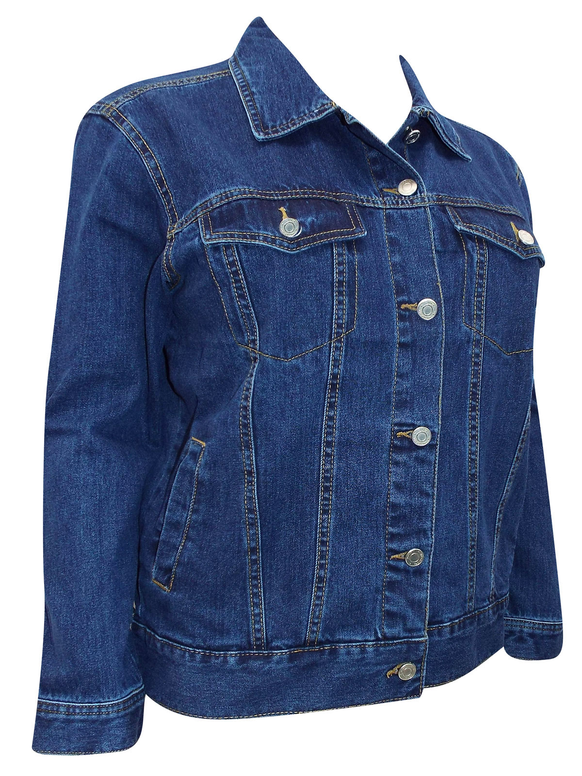 A must have style staple, this denim jacket is ideal for effortless, everyday style. Featuring a colared neckline, button through, long sleeves and two breast pockets. Length 24in.