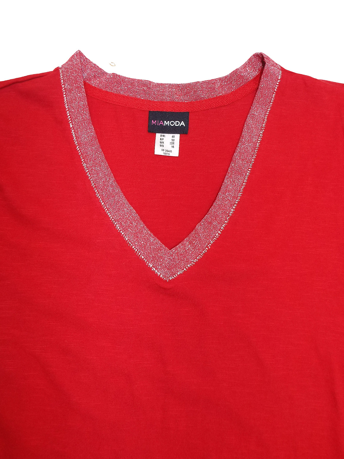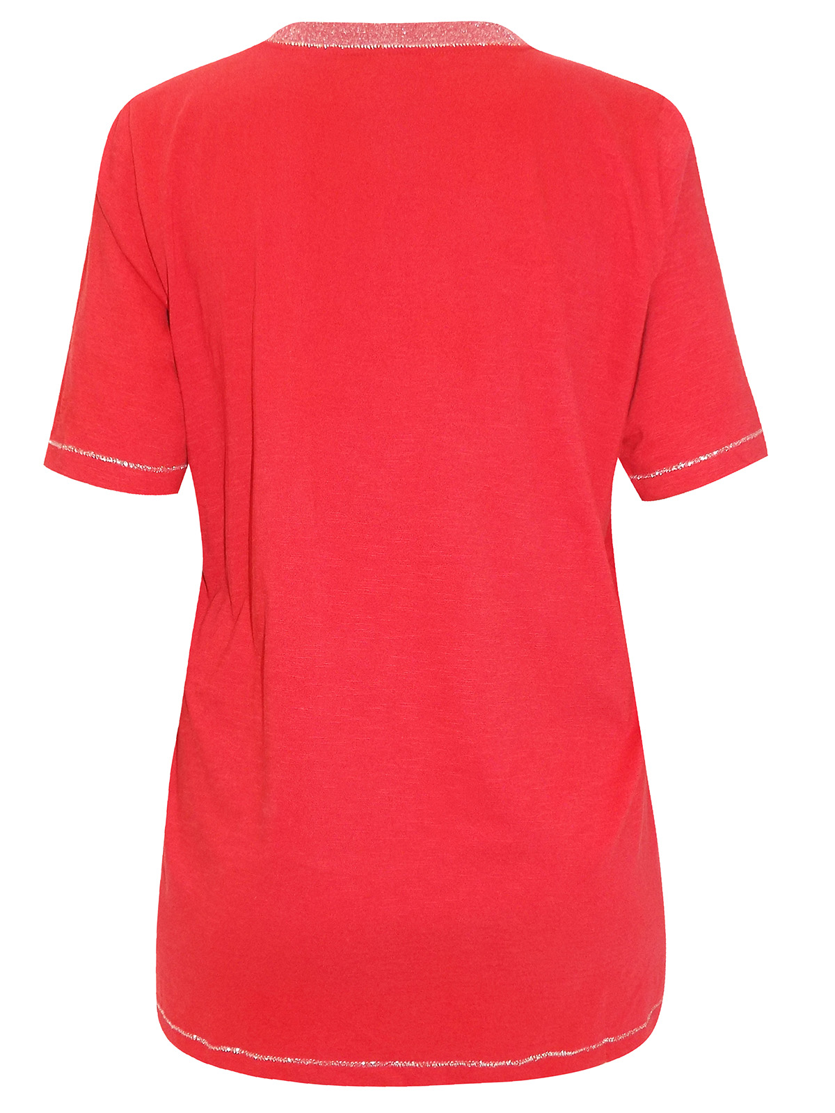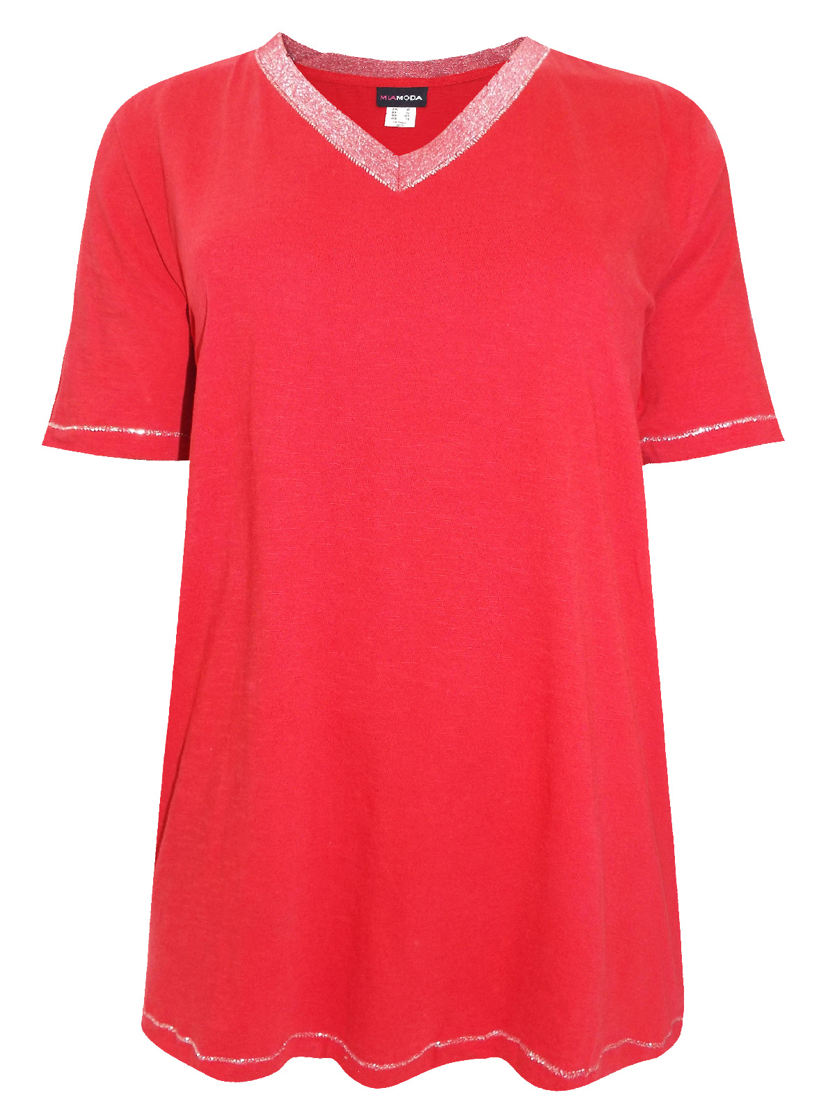 This new-in top is perfect to spruce up your wardrobe for summer. Featuring a v-neckline, short sleeves and metallic trims. Length 31in.
