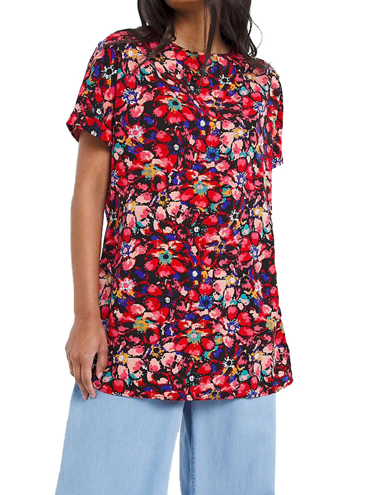 This boxy top comes in a vibrant floral print. In 100% polyester, this top will feel super soft, offering a comfortable and relaxed fit. Length 32in/81cm.