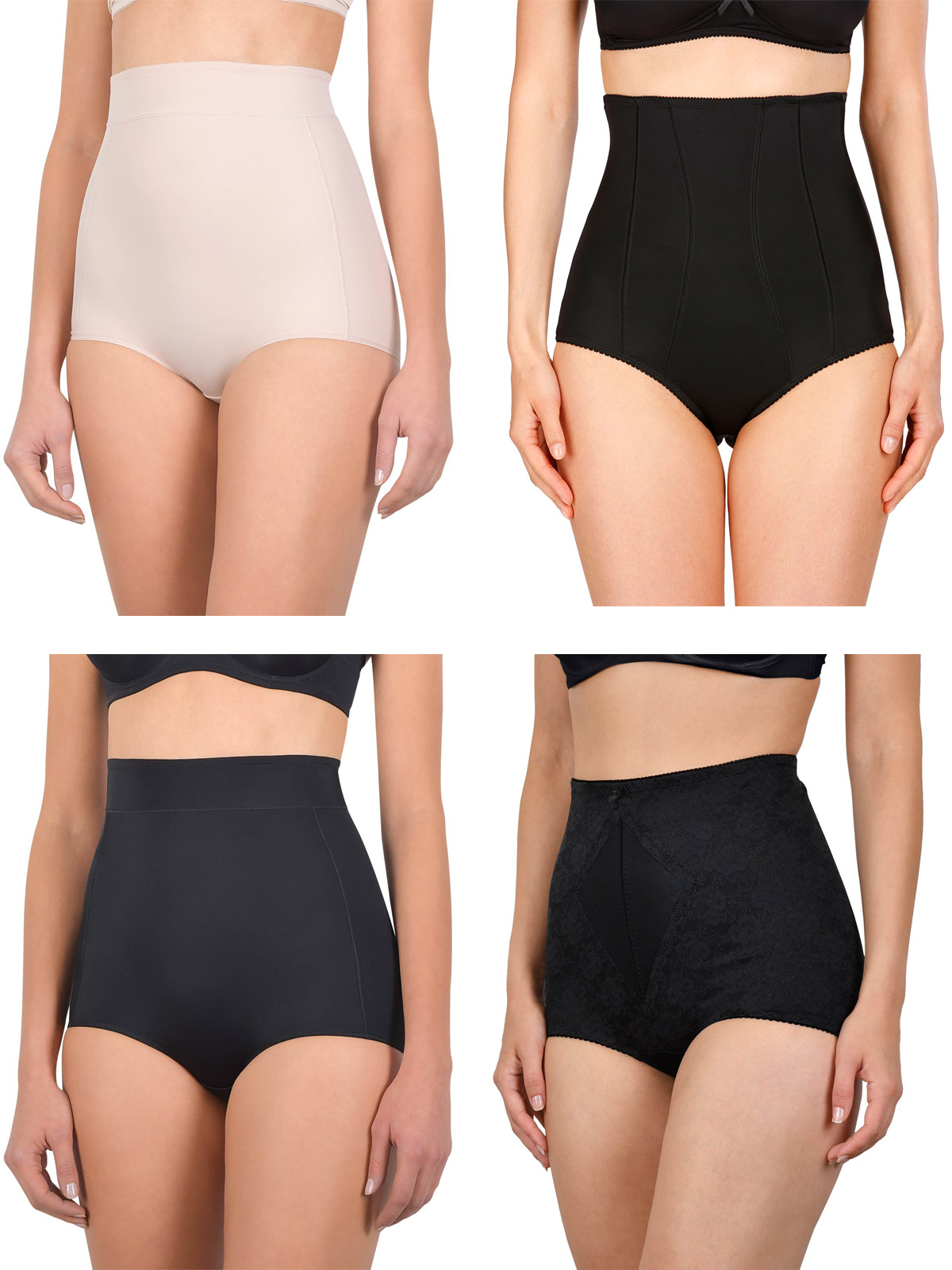 A mixed pack of body shapers with a variety of styles and colors and lengths.