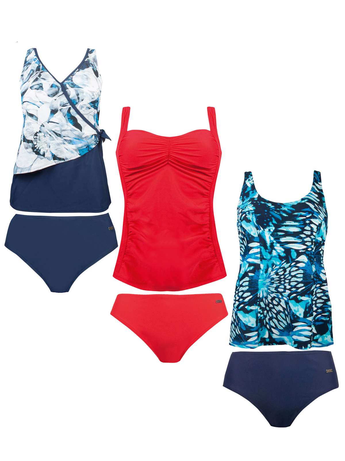 A mixed pack of ladies tankinis with a variety of styles and colors.