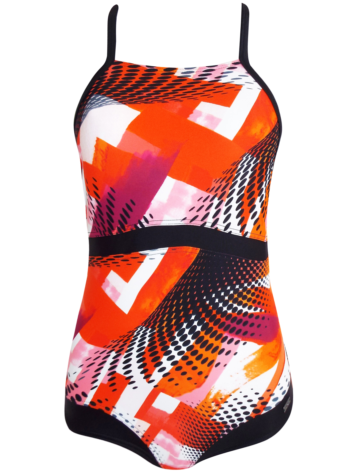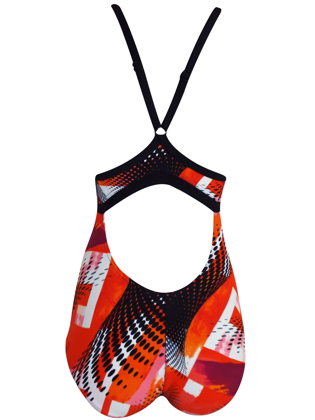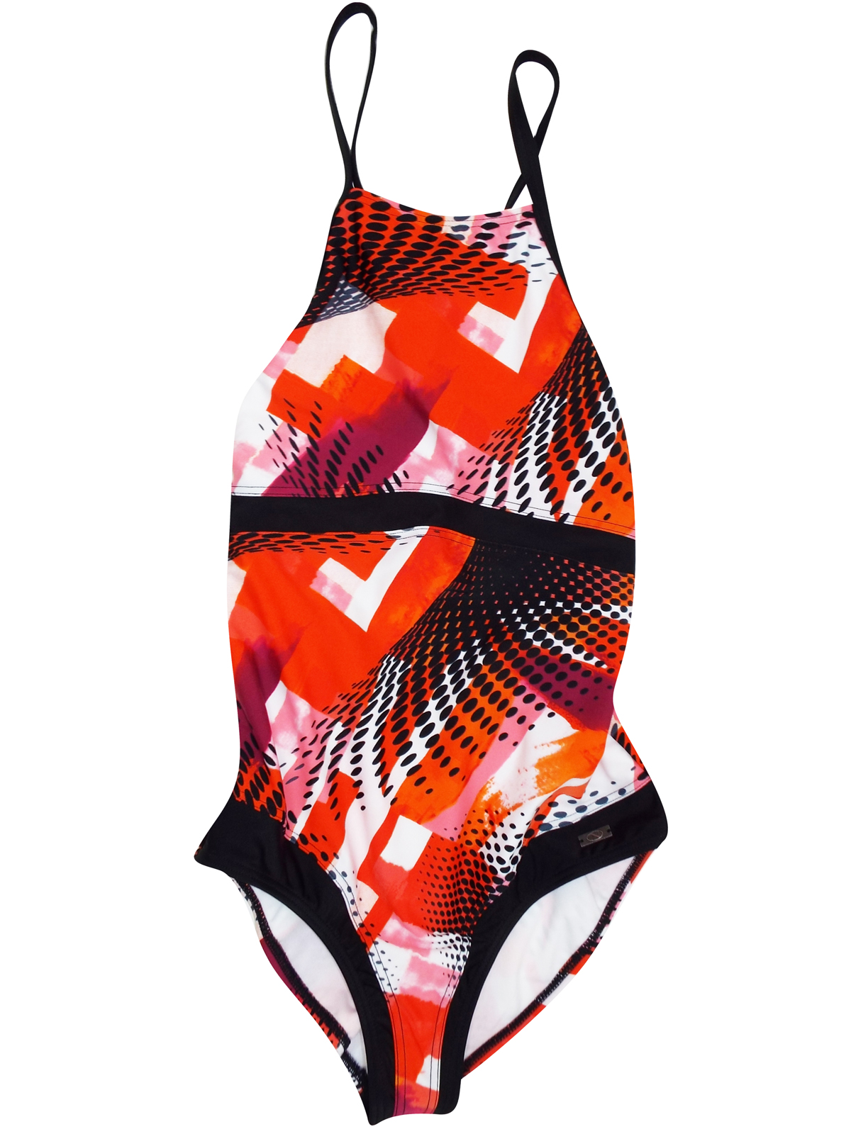 This sporty swimsuit is perfect for laps or lounging. Featuring a racer back design with adjustable straps and cut-out detail.