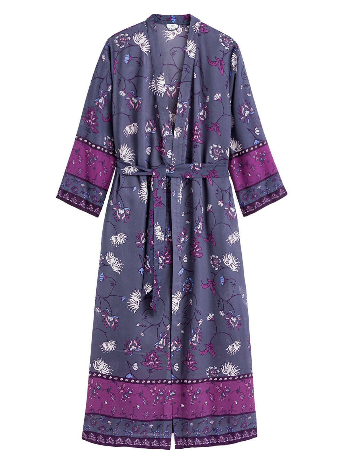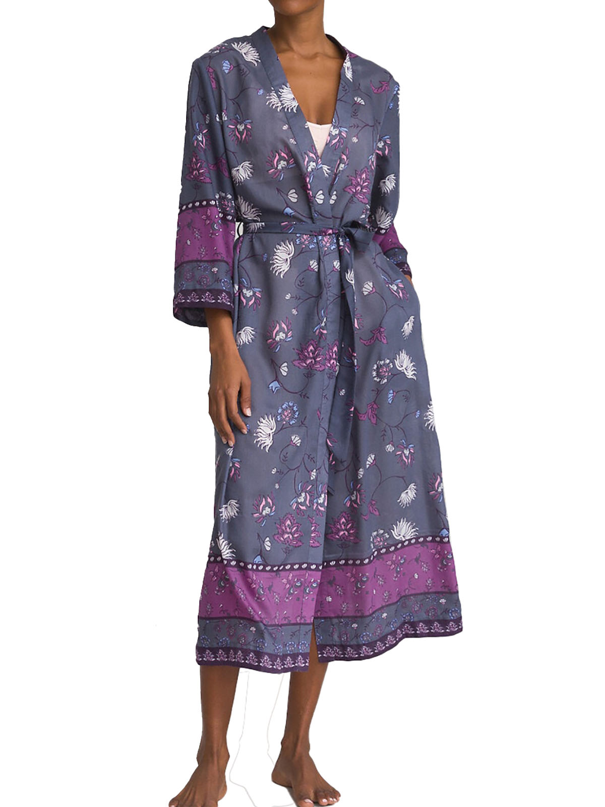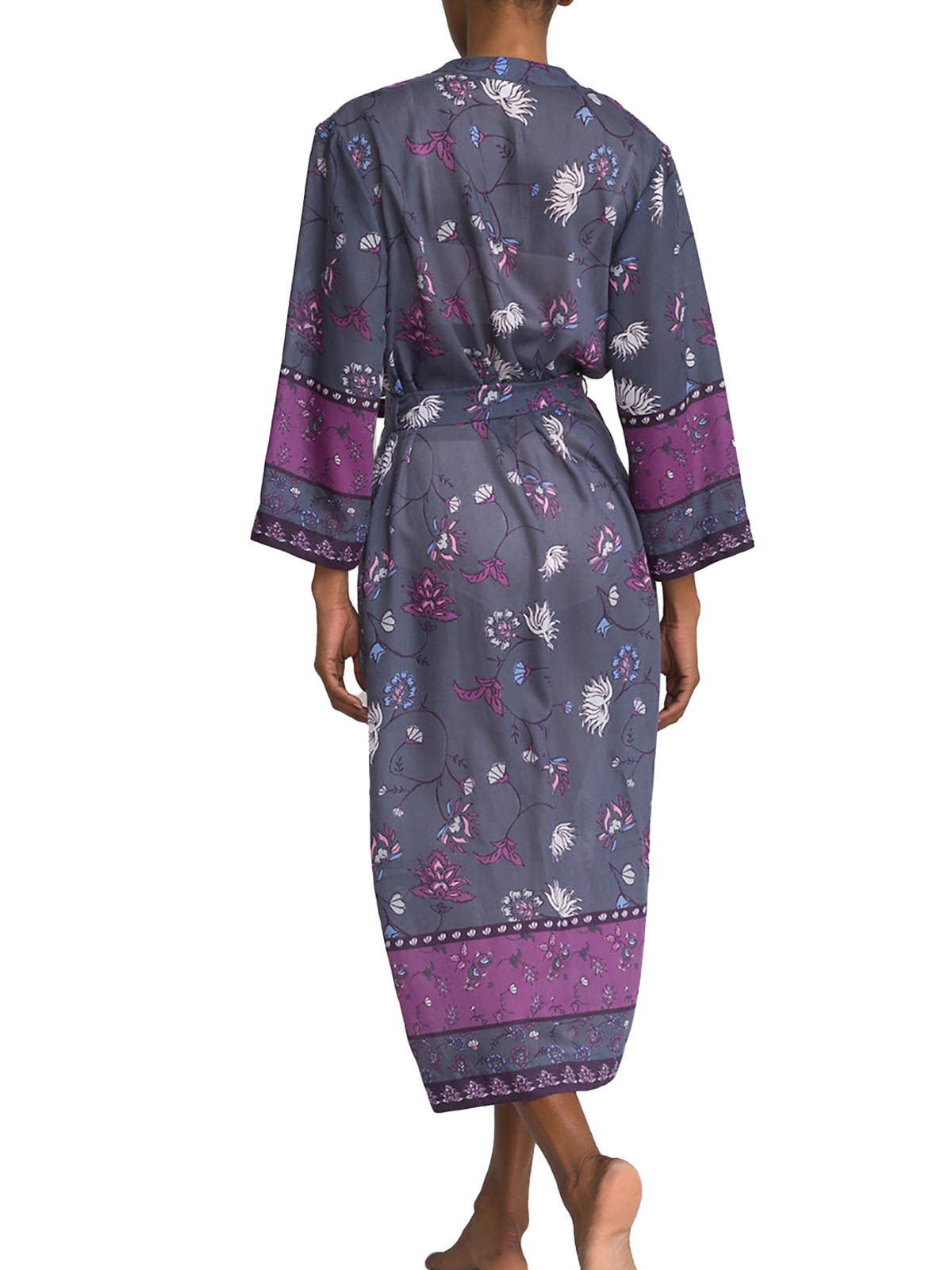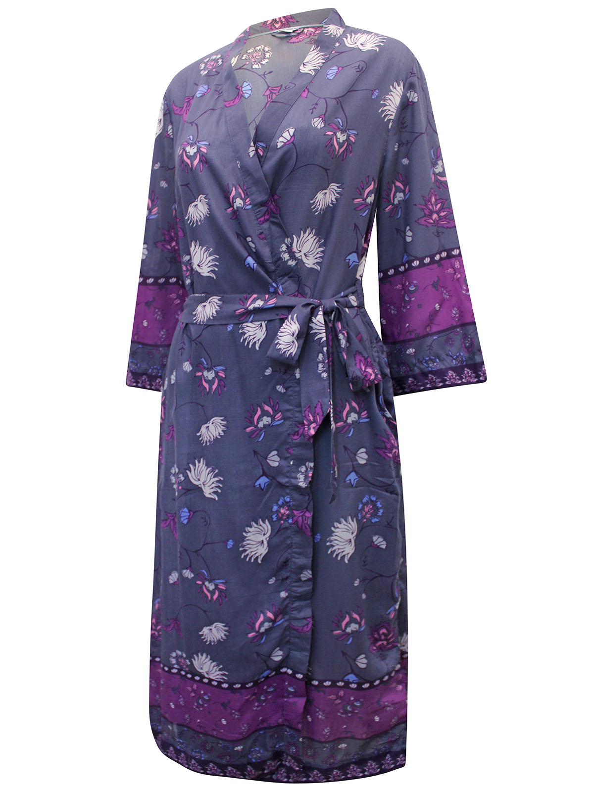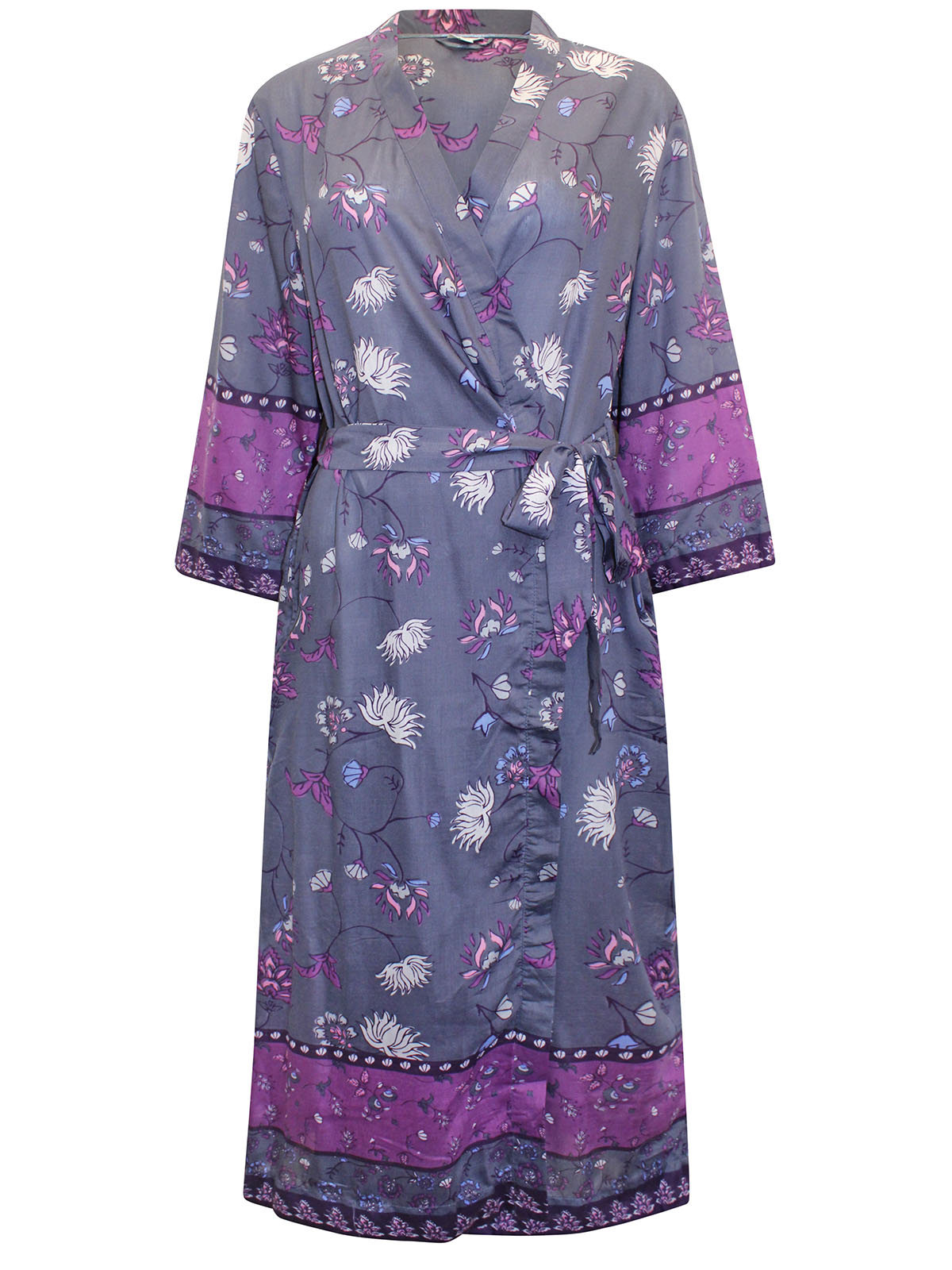 This eye-catching robe is made from a lightweight woven fabric, featuring a floral all-over print and a tie waist and side pockets. Perfect for relaxing at home. Length 49in.