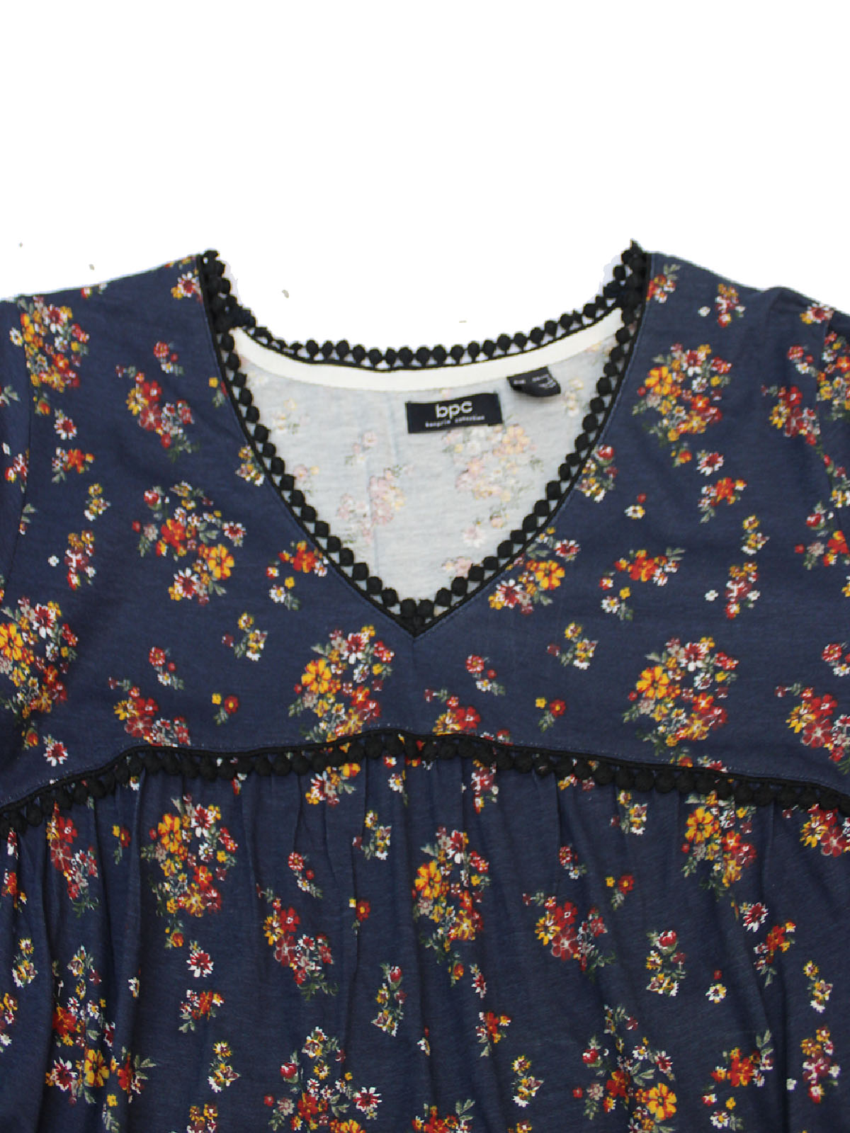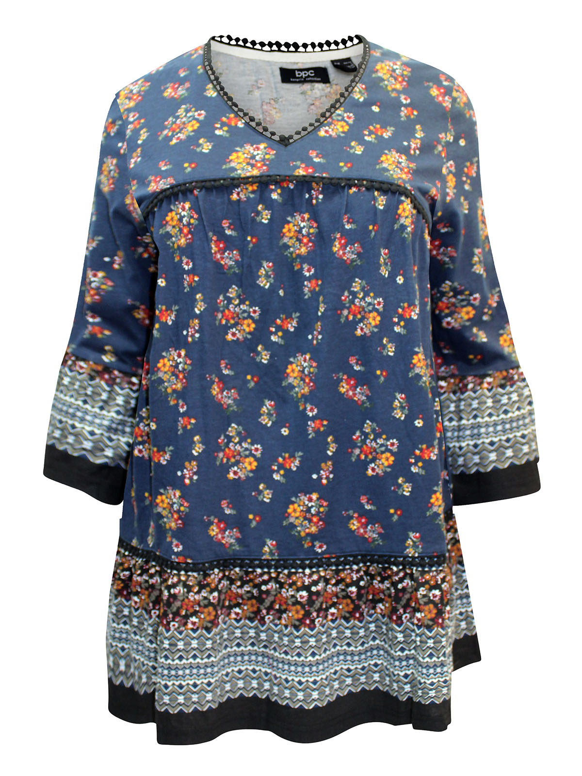 Looking for a top that will take your casual wear to the next level? Look no further than this tunic top. Featuring a v-neckline, 3/4 length sleeves and crochet trim. Length 32in.