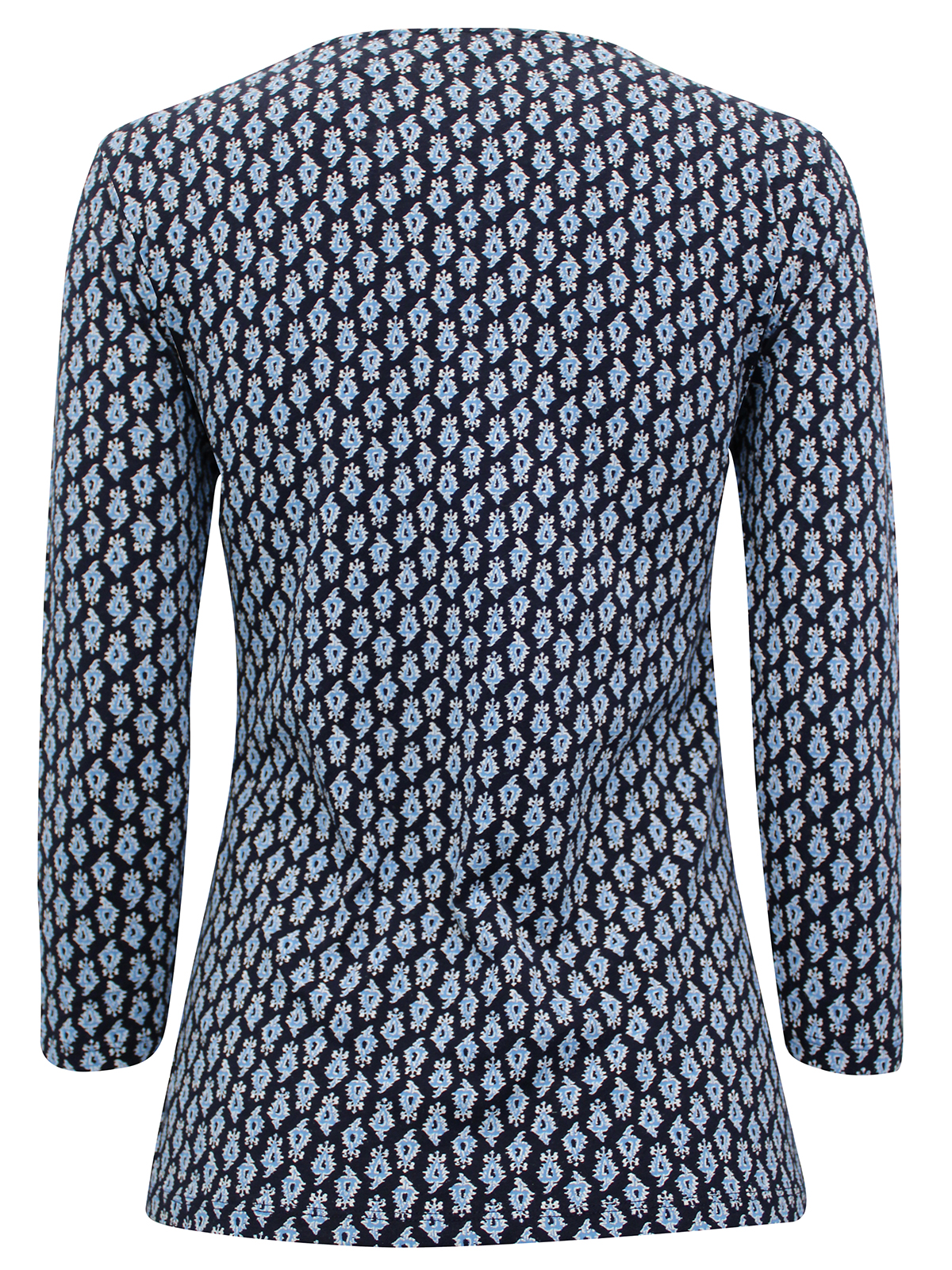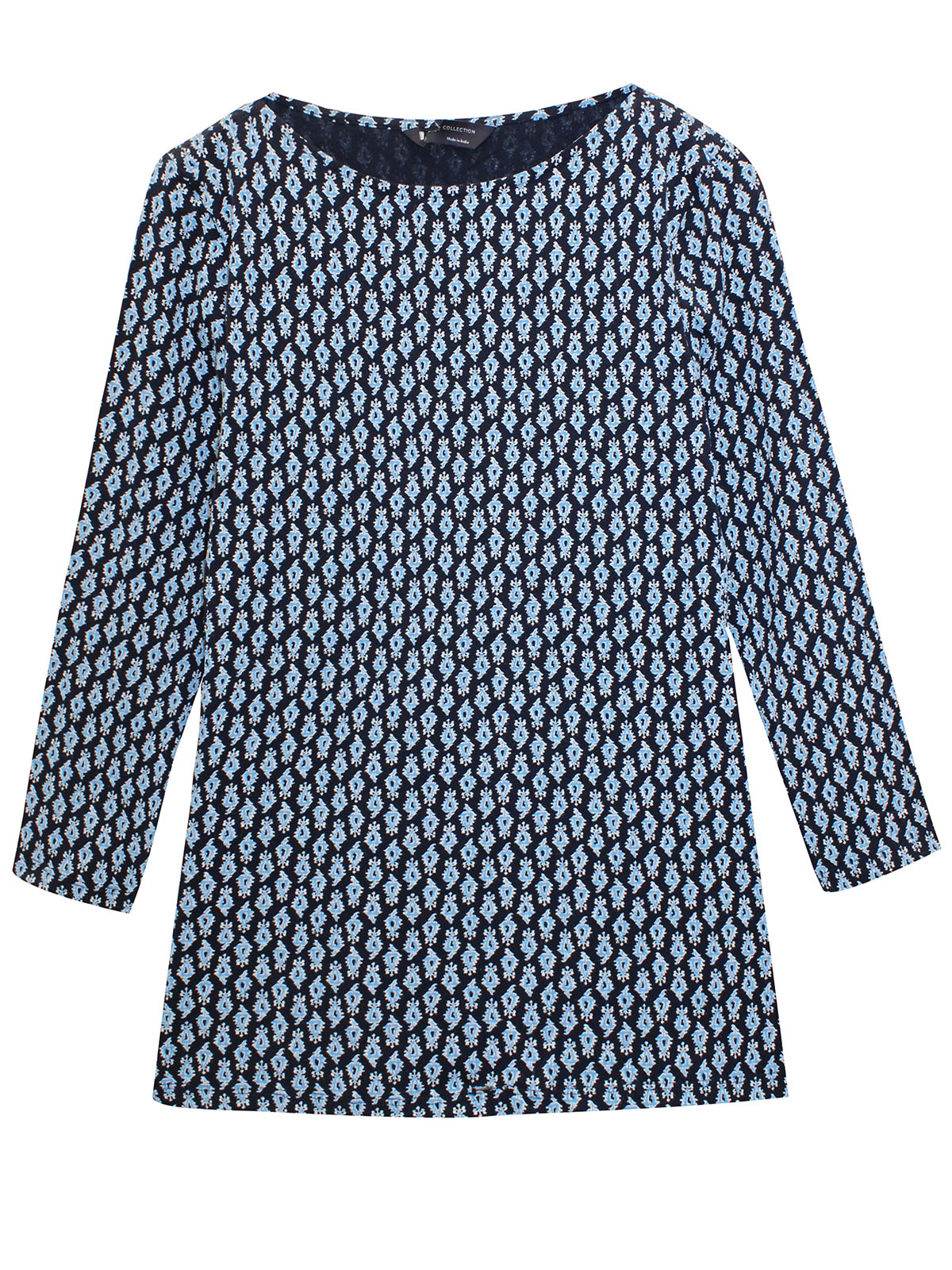 Refresh your print collection with this versatile cotton-rich top. This slim fit style is made with added stretch for comfort. It features a slash neckline and flattering 3/4 length sleeves. Length 23in.