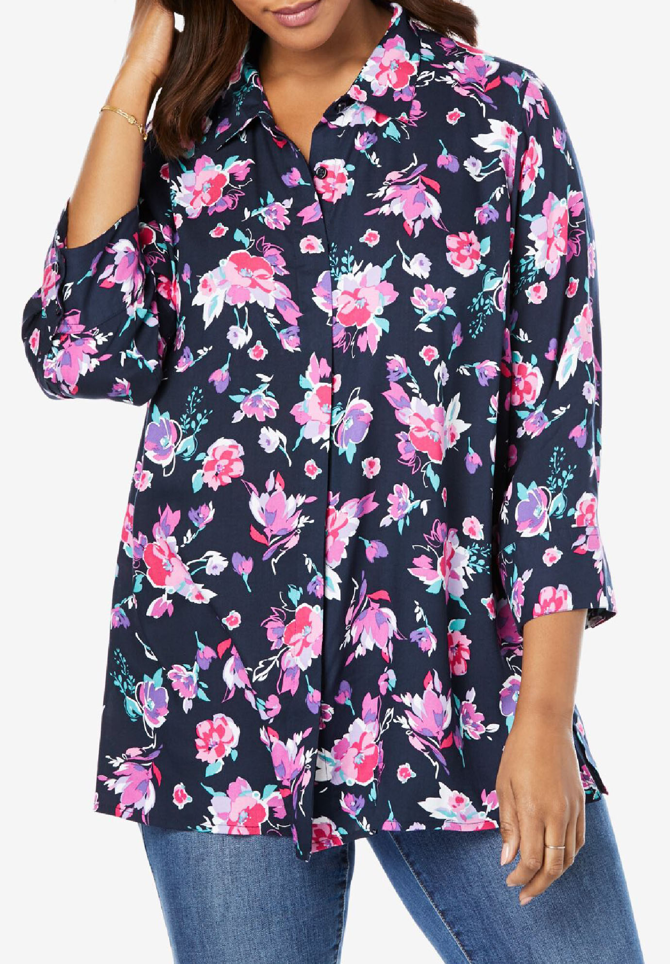 Floral Print 3/4 Sleeve Tunic Blouse