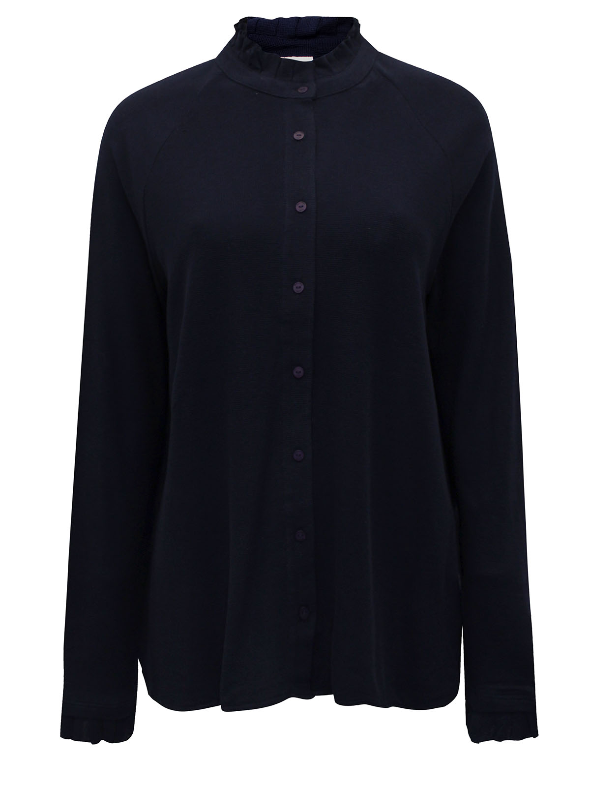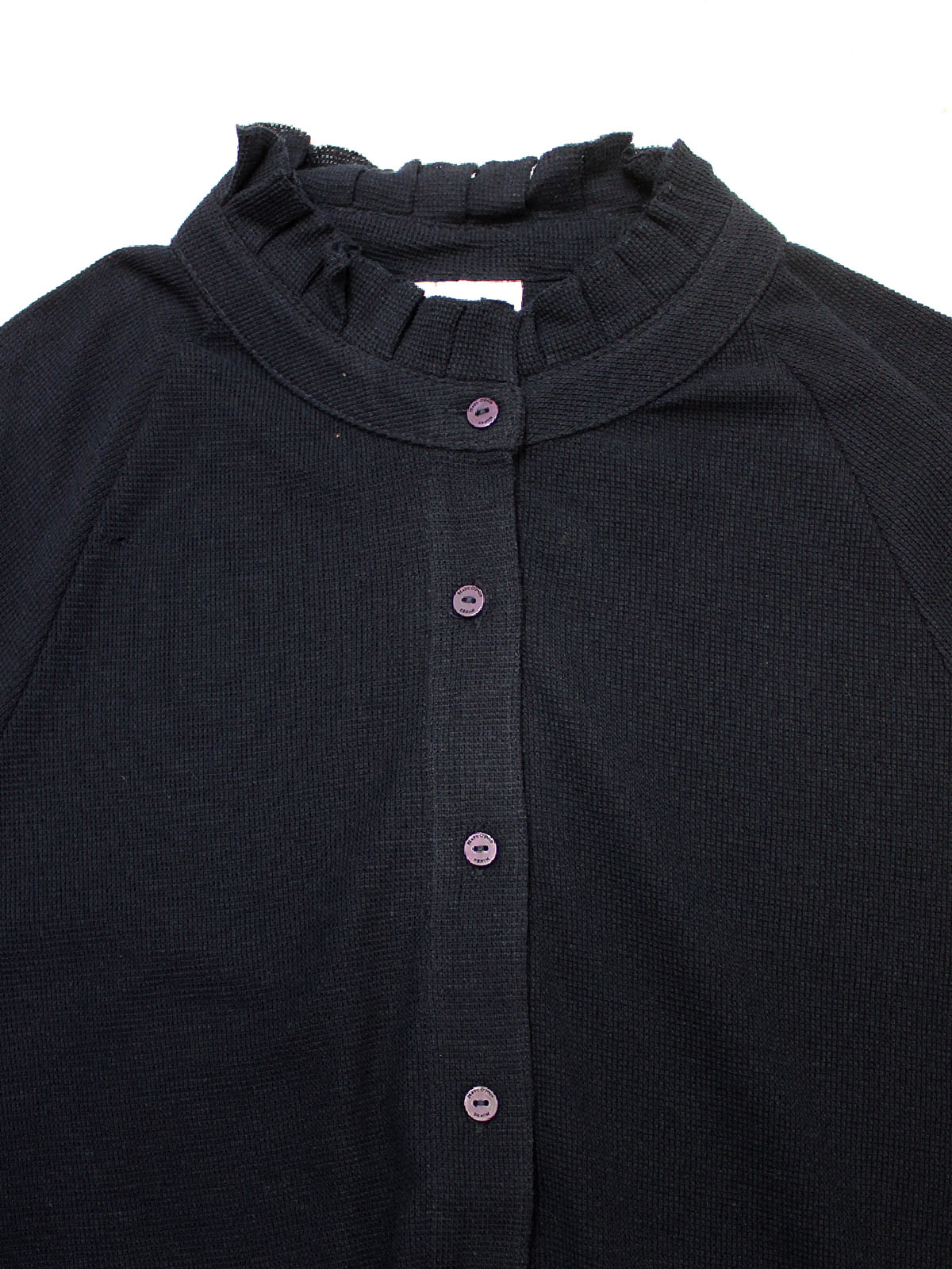 Step into effortless style with this charming ruffled blouse. Crafted from a textured fabric, featuring a high neckline, button front, long sleeves and frill trims. Length 25in.