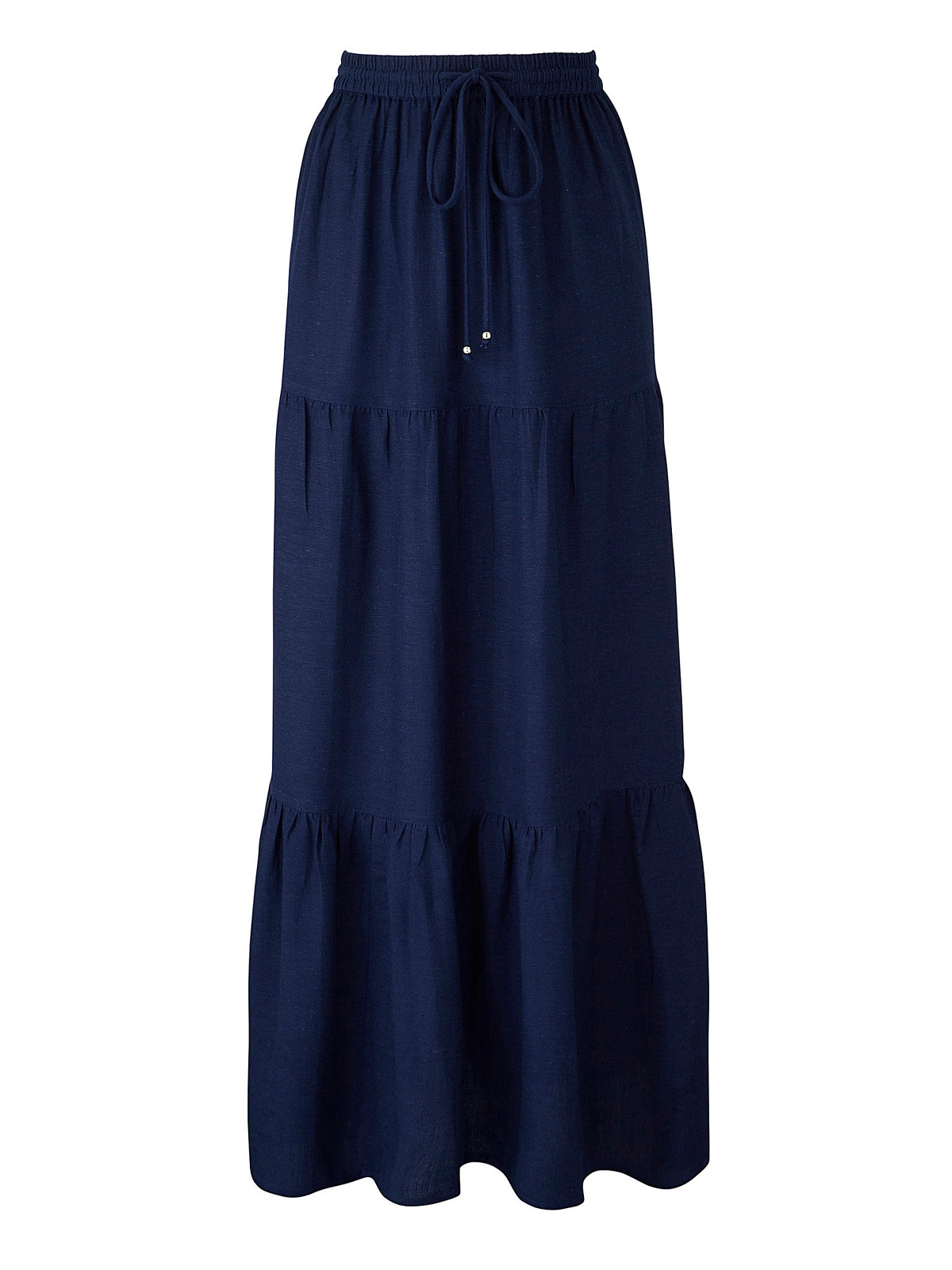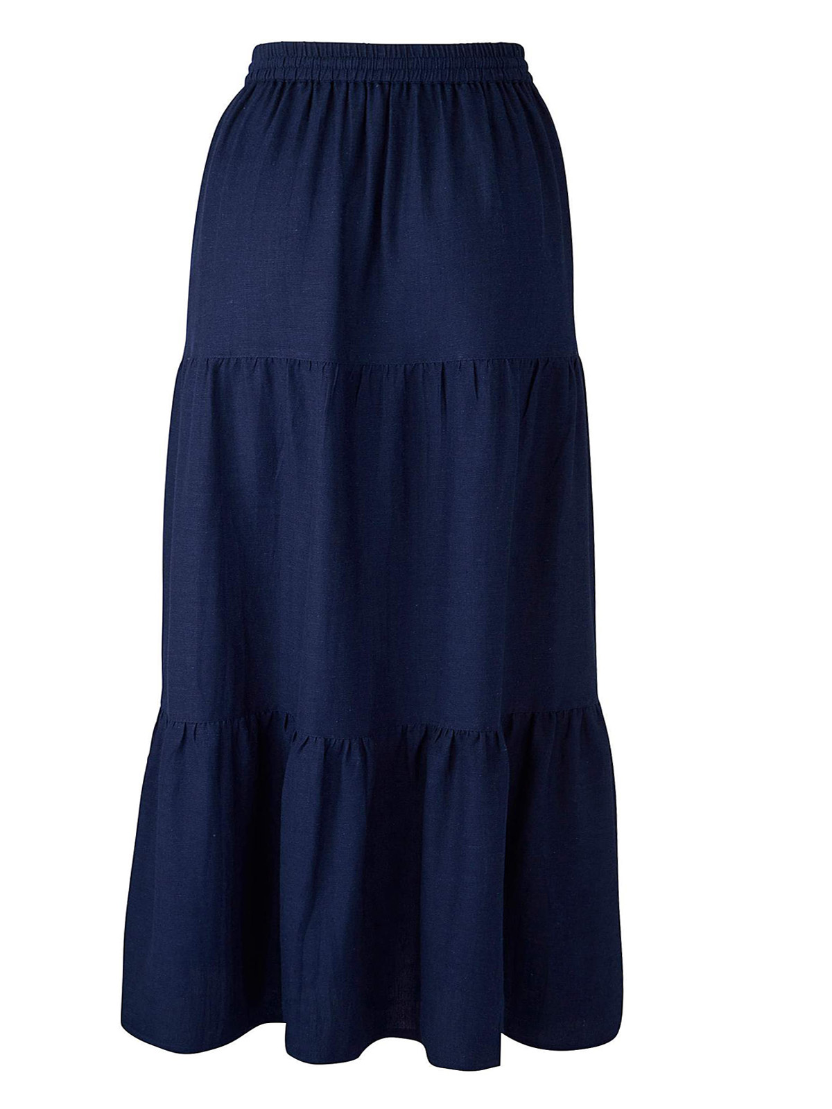 Amazing value tiered, linen-mix skirt with a comfortable elasticated waistband with a mock-tie fastening and toggle. Perfect for your sunny holiday getaway. Lengths; 27in (WF916), 33in (WF919).
