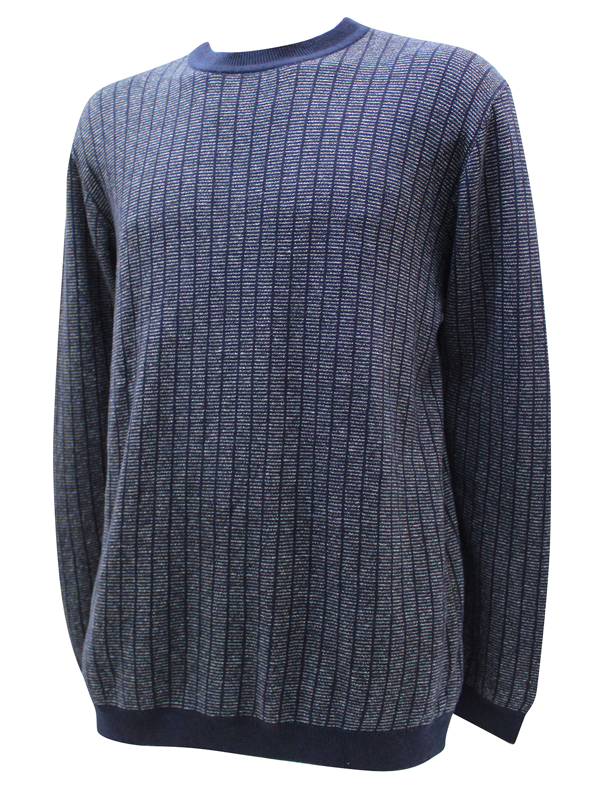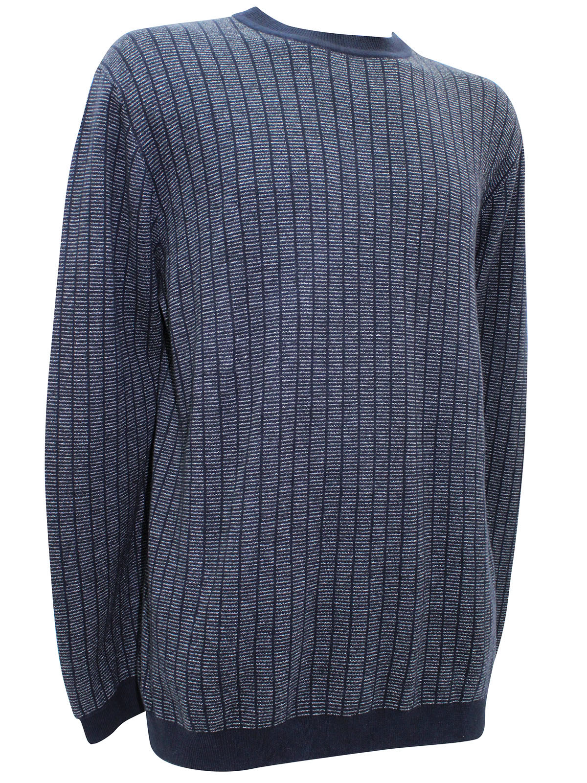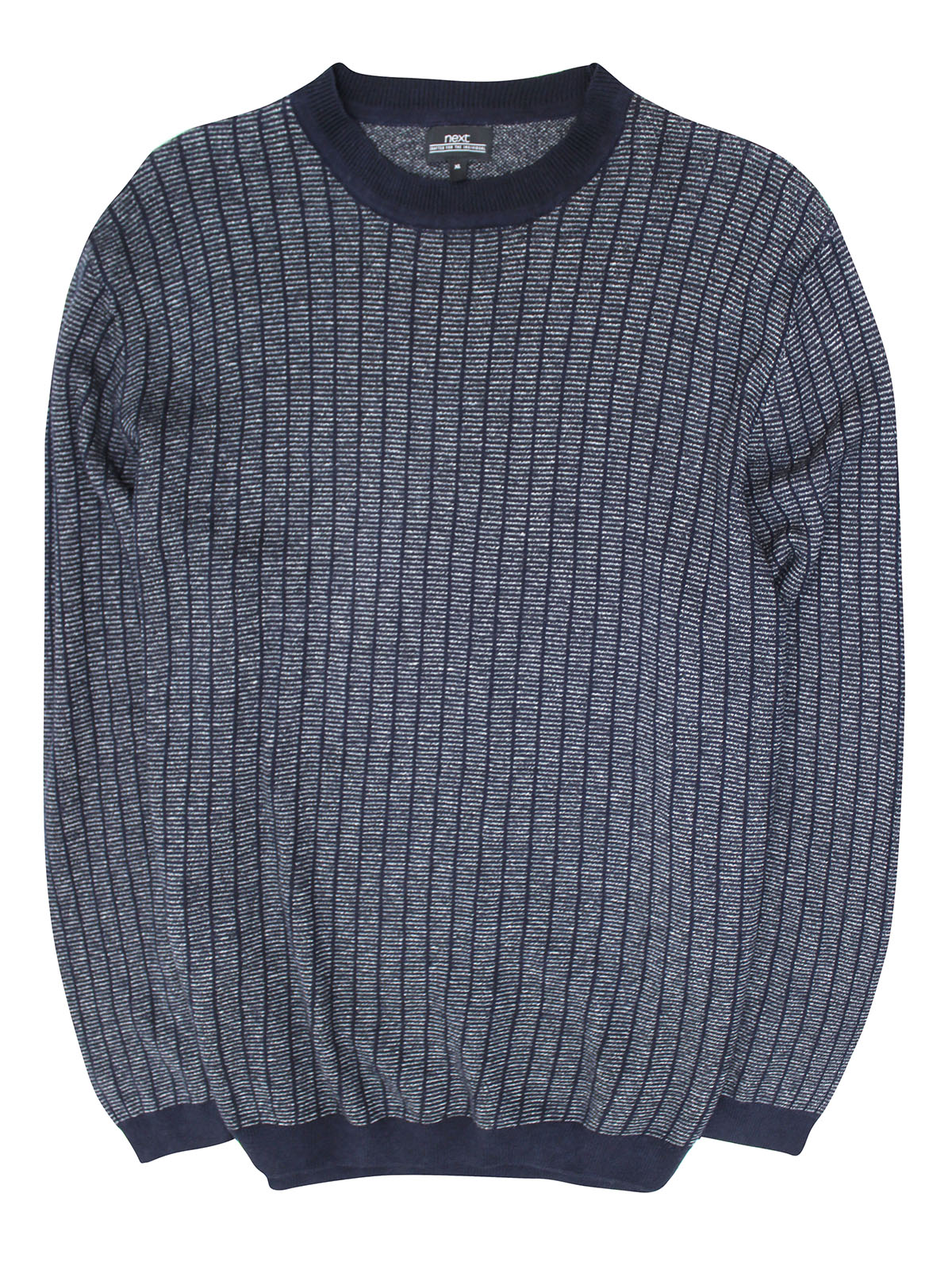 This cotton jumper is perfect for layering and features a neat crew neck. A vertical striped pattern adds a timeless appeal. Length 26in.
