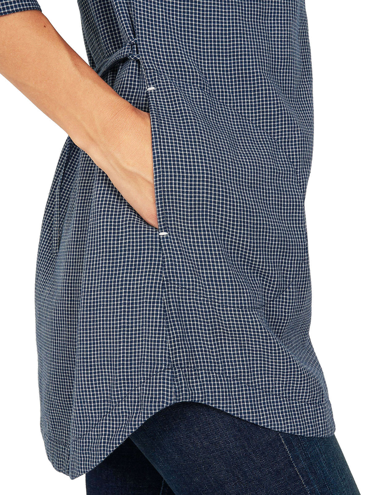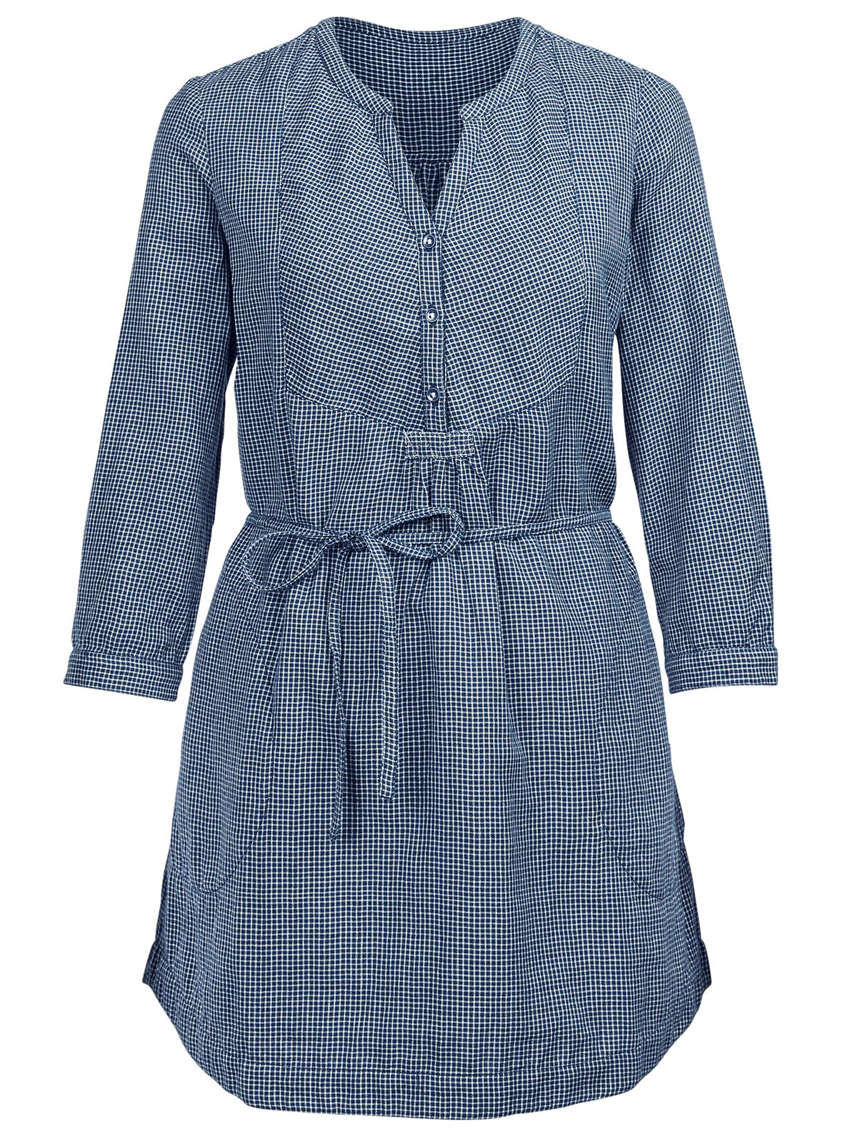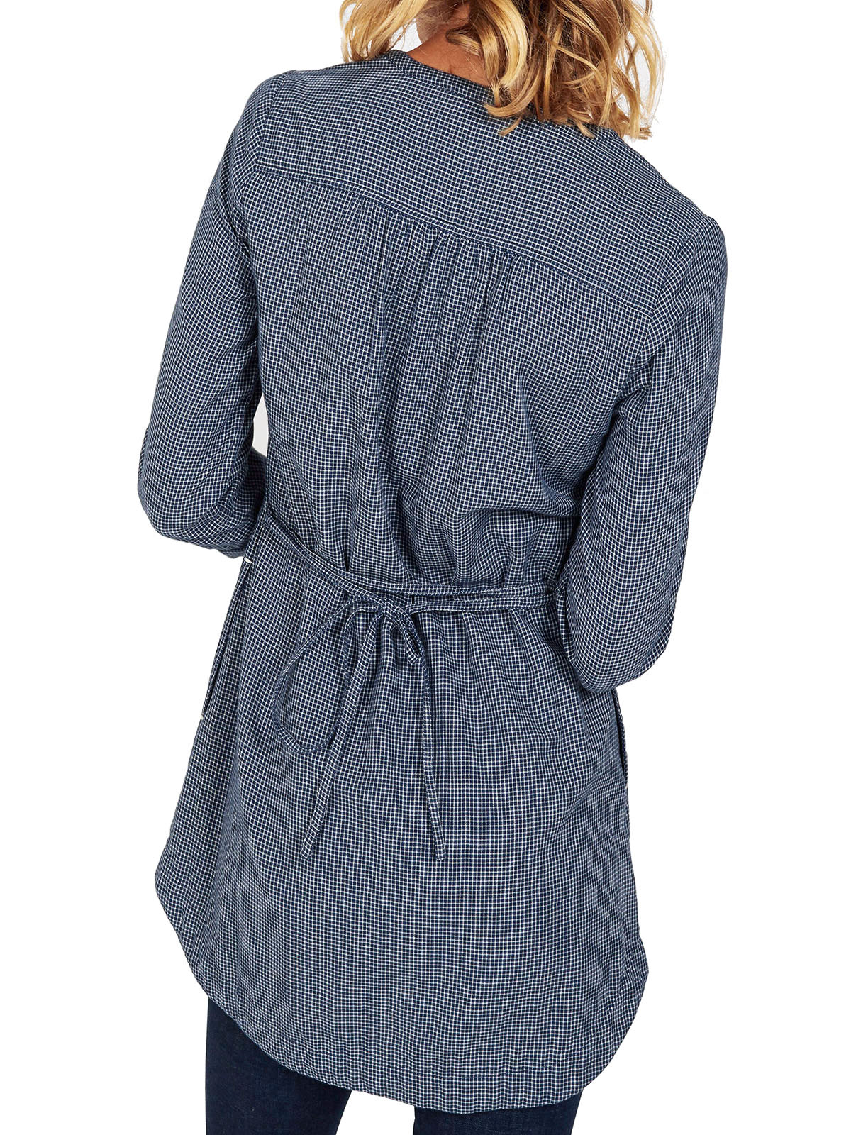This shirt dress is where form meets function, it has the perfect balance of femininity and structure. Featuring a notch neckline, button fastening, 3/4 length sleeves and side pockets. Matching fabric belt. Length 30in at front and 33in at back.